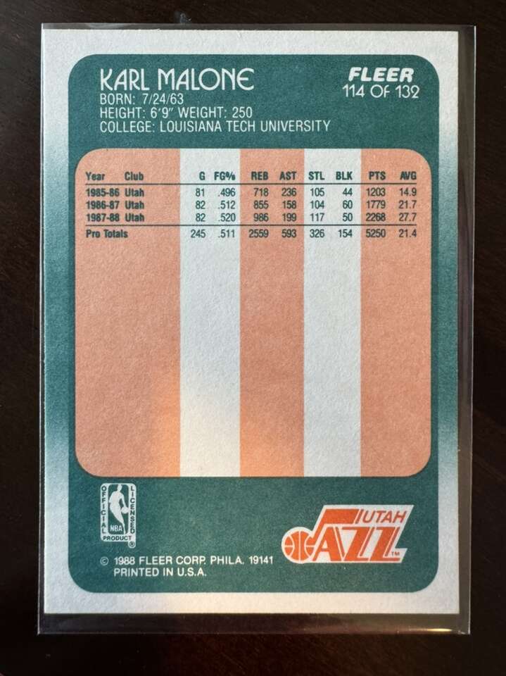 1988 Fleer Karl Malone #114 Utah Jazz 2 Available