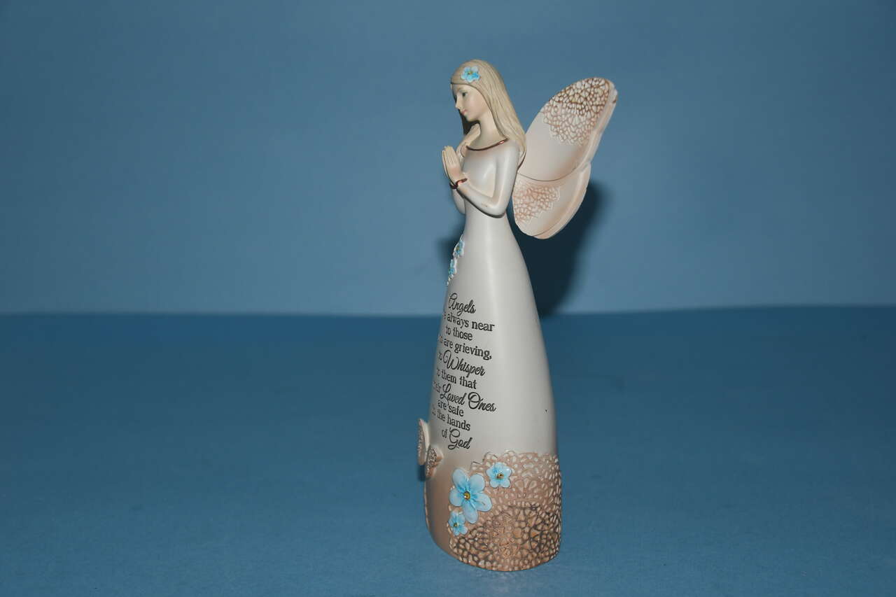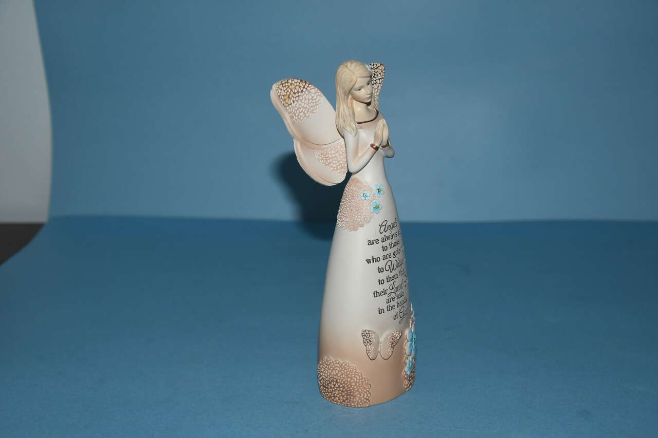This LIGHT YOUR WAY MEMORIAL ANGEL is about 8.5" in height. There are NO CHIPS! It is BEAUTIFUL with DELICATE FEATURES. Questions??? Please ask. We are located in Plain City. Cash only please.