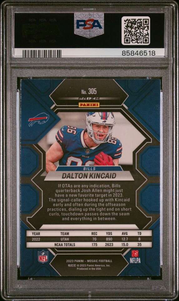 2023 Mosaic Dalton Kincaid White Sparkle #305 PSA 9 Buffalo Bills, Utah Utes
