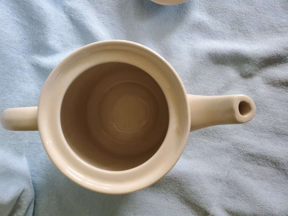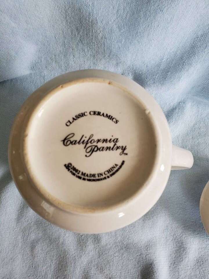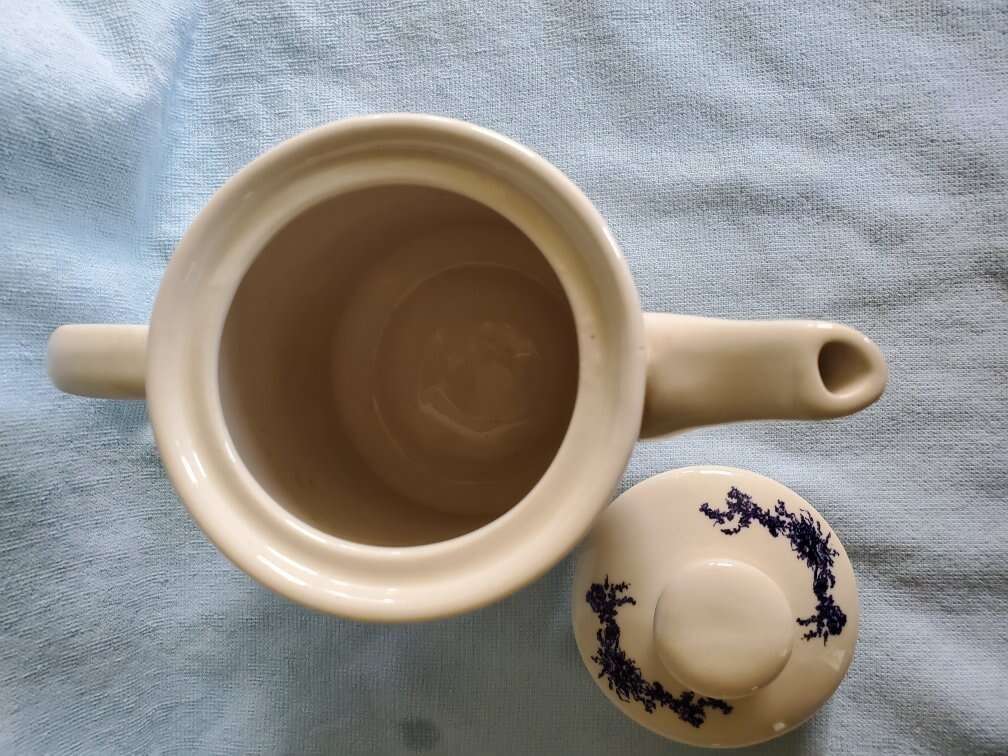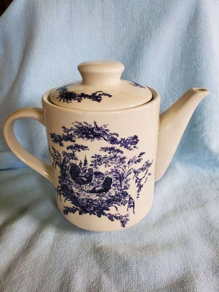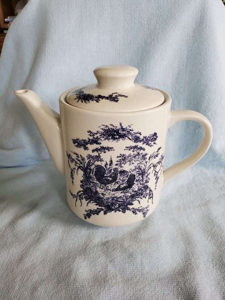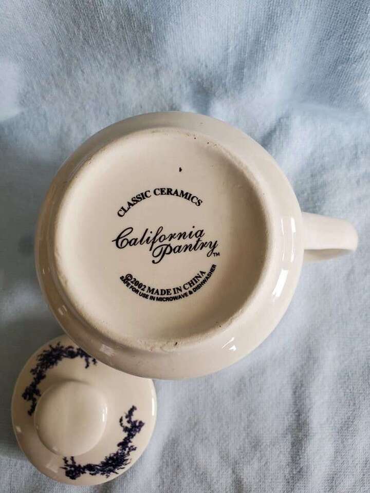 2002 California Pantry Classic Ceramic Teapots. There are 2 teapots. One is Blue and Off White with a Rooster Chicken design. The other is Rust and Off White with the Rooster Chicken design. Both are Ceramic material and come with a matching lid. They are approximately 6.5 inches tall and 8.25 inches wide. Excellent condition. No chips or cracks. $10.00 EACH. Buy one or buy the set! CASH ONLY