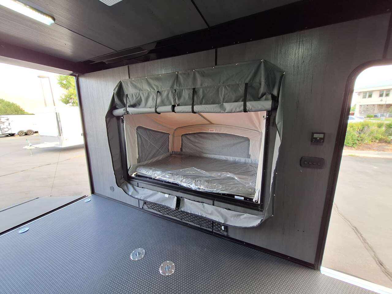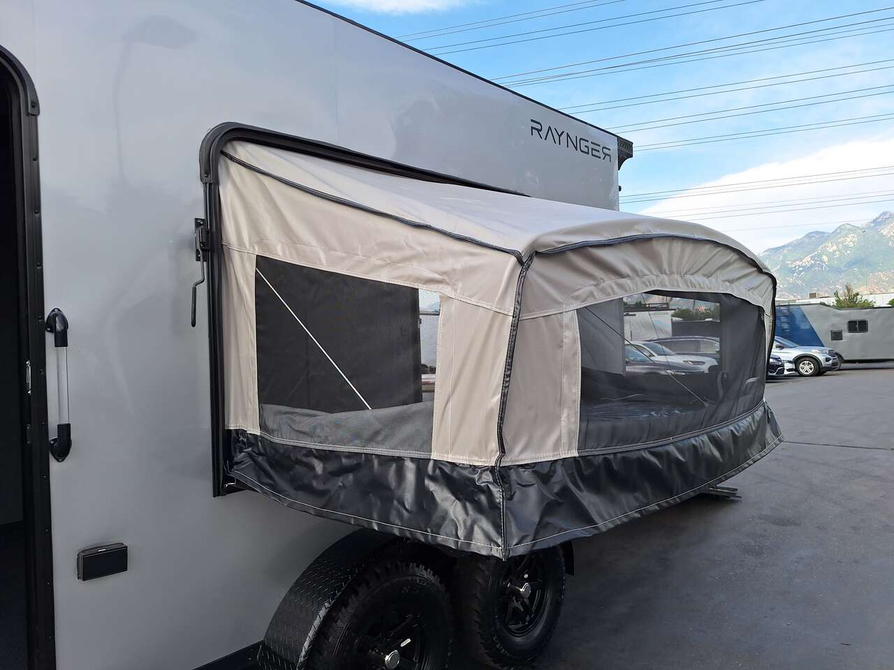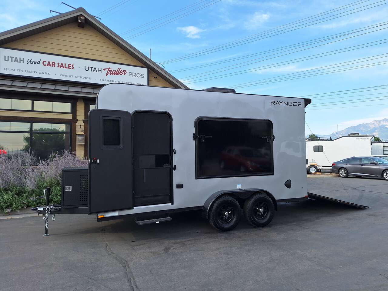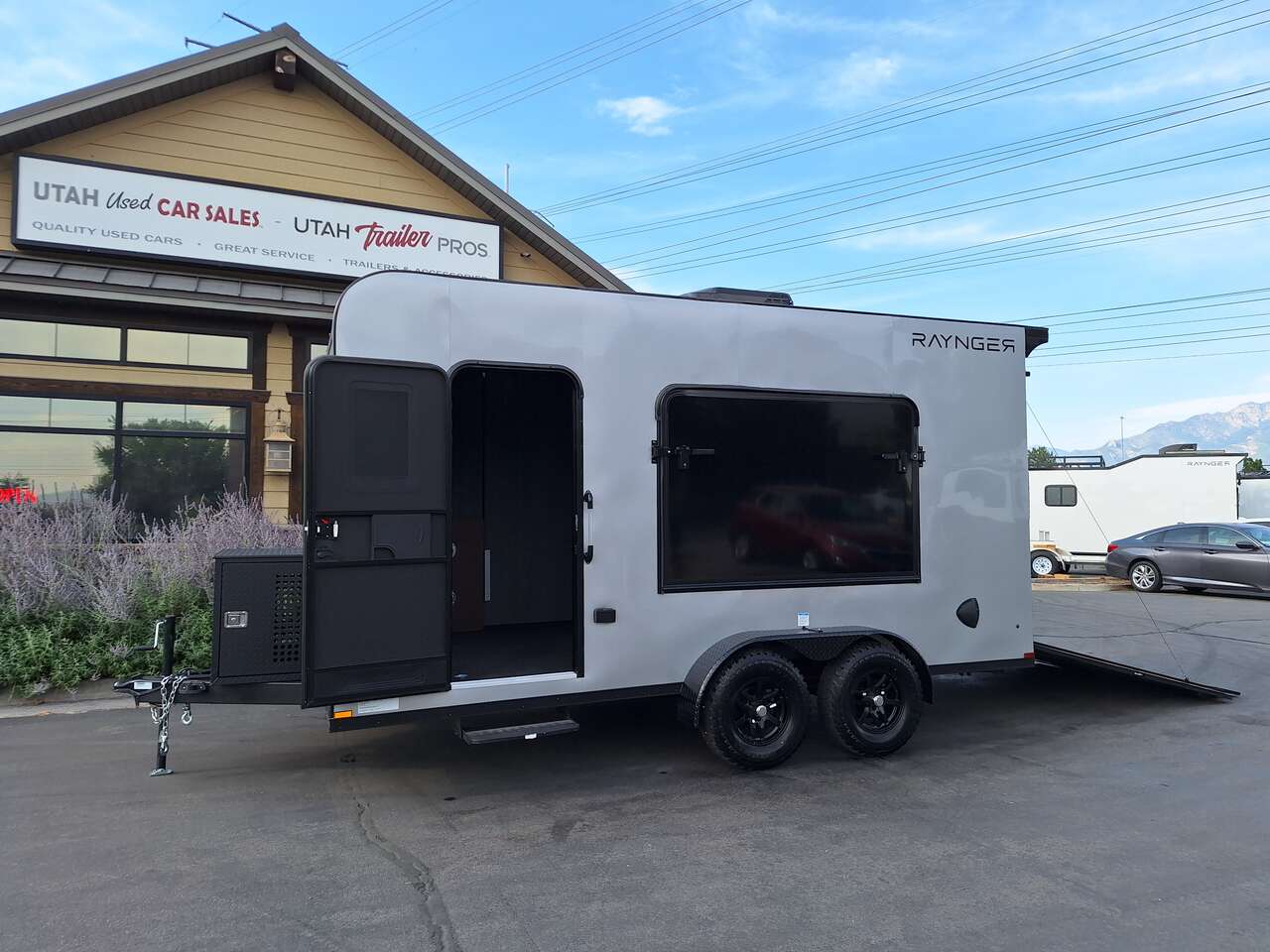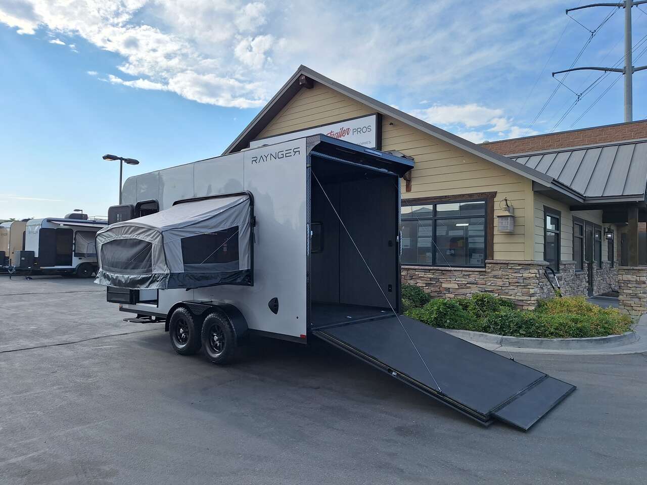 LIMITED TIME $185 A MONTH WITH ZERO DOWN WITH OUR SPECIAL LOCAL CREDIT UNION PARTNER!!! NO PRE-PAYMENT PENALTIES!!! NEW 2025 MODEL!!! FITS ANY STOCK SIDE BY SIDE UTV!!! RAYNGER PREMIUM OFF ROAD TOY HAULER CAMPER!!! 18 INCH GROUND CLEARANCE!!! OFF ROAD TIRES!!! FULLY INSULATED!!! HEATING AND A/C!!! WET SOUND STEREO!!! FOLD OUT/POP OUT TENT WITH MATTRESS!!! 84 Inch Rear Entry Height/87 INCH INTERIOR HEIGHT!!! 77 Inch Rear Entry Width!!! Aluminum Ventilated Locking Generator Box!!! UPGRADED TORSION AXLES!!! 14.2 Foot Long Garage Space!!! And Much MUCH MORE!!! Check out our Specs!!! Also available in 18 foot models. 18 Foot Models can have 3 Fold Out Beds/Pop Out Tents. 16 Foot and 18 Foot Models will fit ANY stock 4 Seater Side by Side • 6” I Beam Frame• Flat Top Design• Flat Front Design• Wall Posts 16” on Center• Cross Members 16” on Center• Roof Bows 16” on Center• Rust Inhibiting Z-Tech Protection on Chassis• Ameraguard on Tongue• Ameraguard on Rear Bumper• Ameraguard Around All Door Openings and Stepwell• Ameraguard Around Edges of Ramp Door• 3500 LB Spring Axles• 2-5/16” Coupler• One-Piece Aluminum Roof• ST235/75R15 Aluminum Wheels with Chrome Center Caps• 2000# Ramp Door with Eberhard Latch• 30” Tempered Glass RV Door with Screen Door• .030 Exterior Metal with Screwless Sides• 24” Black Stoneguard• 3” Black Bottom Trim• Sand Pad• Black Door Hold• 2.7mm Charcoal Textured Vinyl Ceiling • 9mm Charcoal Textured Vinyl Walls• 3/4” Engineered Wood Floor with Rubber Coin Overlay• (6) 1200 LB Floor D rings Installed with Backer Plates• LED Clearance Lights and Tail Lights• LED Back-up Lights• No Show Wheel Box• Spoiler with Toggle Switch• RV Step• 7’ Interior• (2) 17” Chrome Base Lights with Switch• (1) Black 17” Spot Light with Switch• (1) 30 Amp Panel with Marine Plug• A/C Unit with Heat Strip• (3) Interior Recepts• (1) Exterior Recept• 12V Battery and Charge Line• Prep for Backup Camera• Wet Sounds System• (3) Blue Interior Cabinet Lights• (1) 6’ Section of Flex Lights• Black ATP Rear Header and Hoop• Black ATP Fenders• Insulated Walls & Ceiling• Base Cabinets• Overhead Cabinets with Netting Over Compartments• Pop Out Tent• Black ATP Storage/Generator Box Mounted On Tongue