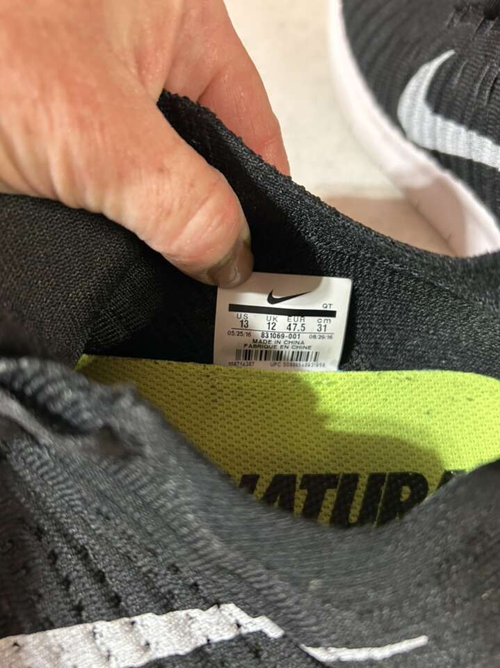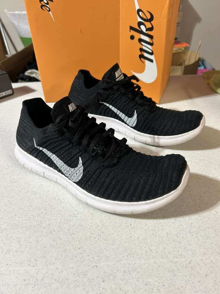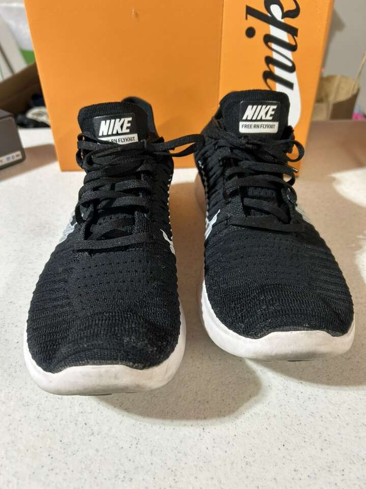 VenmoIn great condition men’s size 13 Nike Free RN Flyknit in black with white soles and white swoosh. Clean smoke free home. Cash or Venmo. Porch pick up from Alpine.