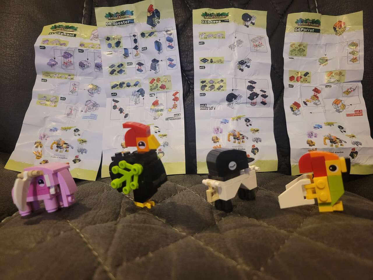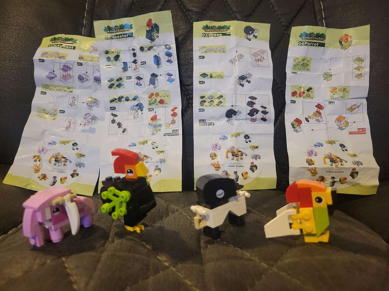 4 Lego Mini, Elephant, Rooster, Sheep, Parrot