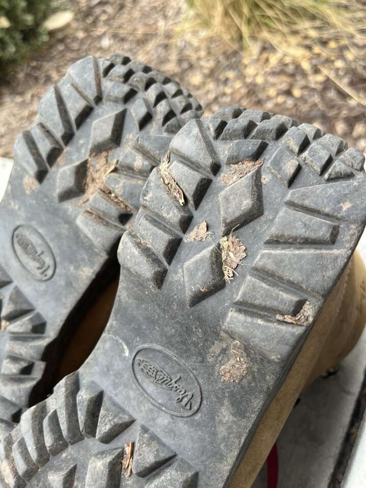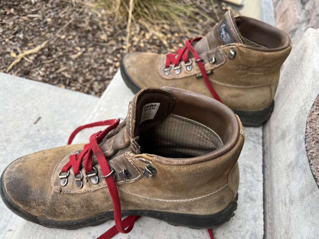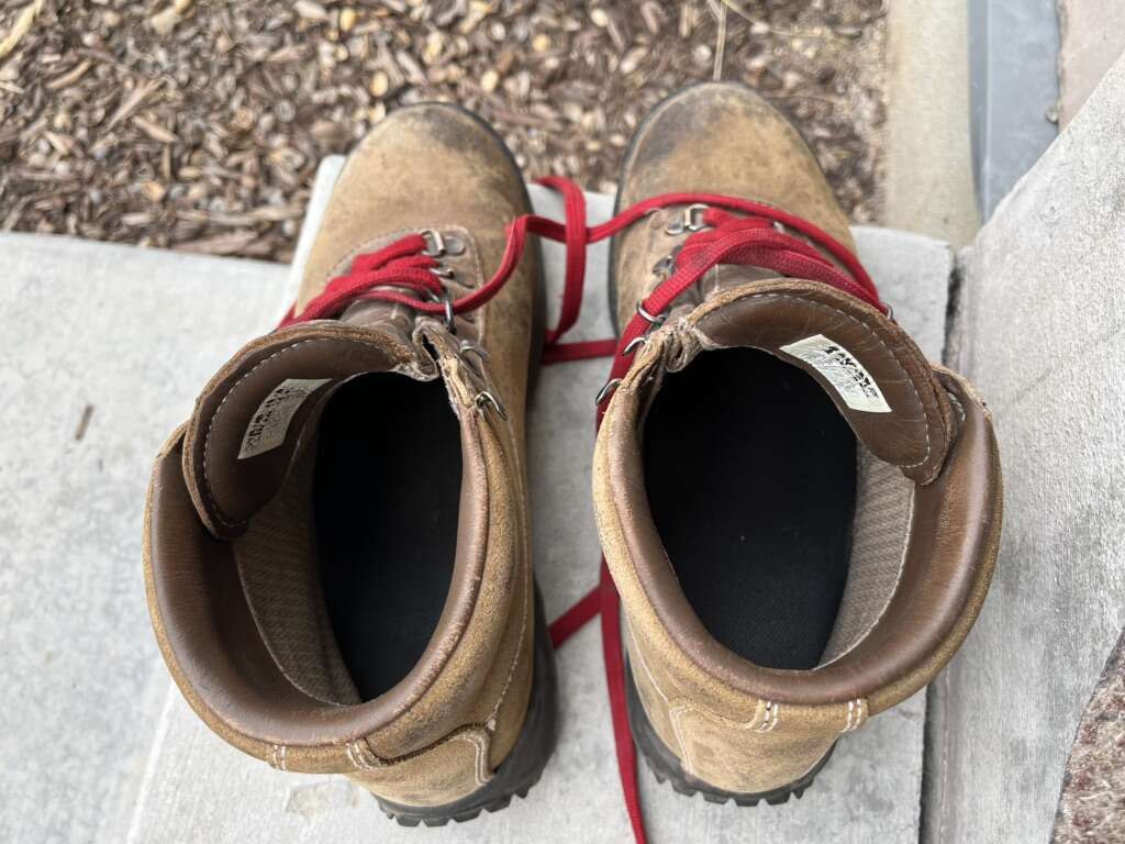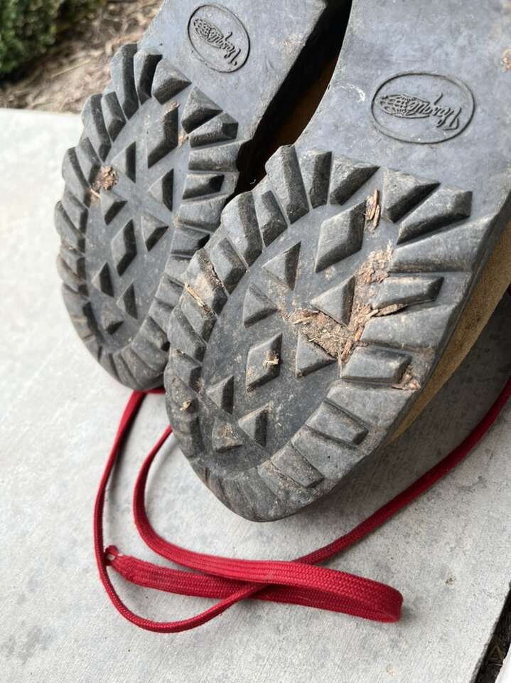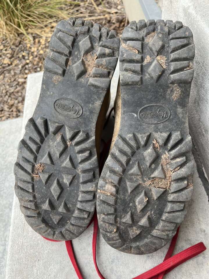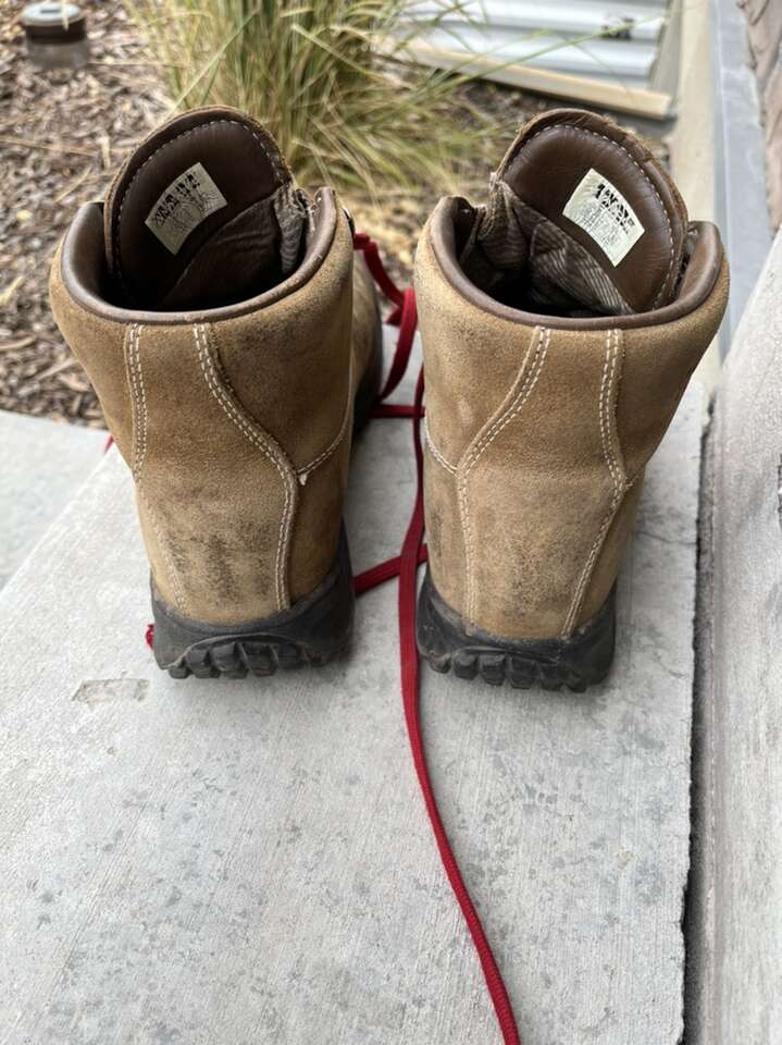 These boots are in really good condition. I have only worn them around the house and camp. I don’t think they’ve ever been on a hike because they’re just too small for me. You can determine condition from the pictures.