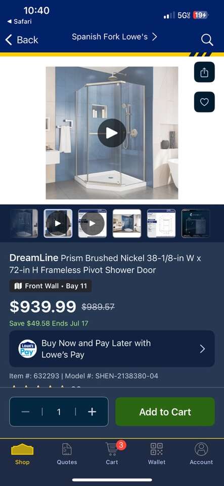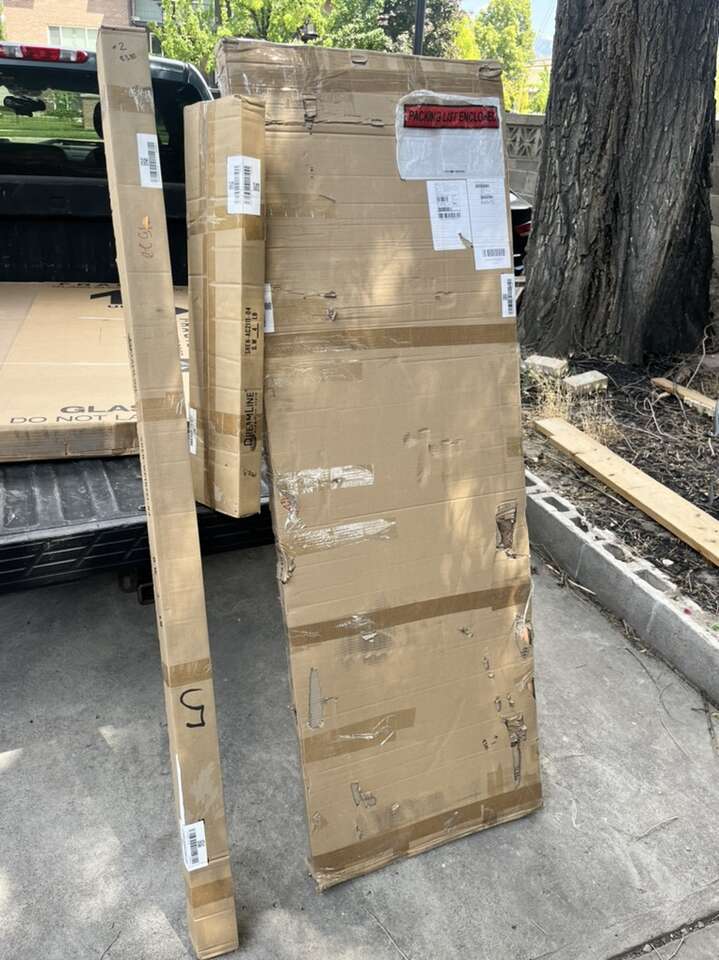 Shower door The 3 boxes shown is what is included