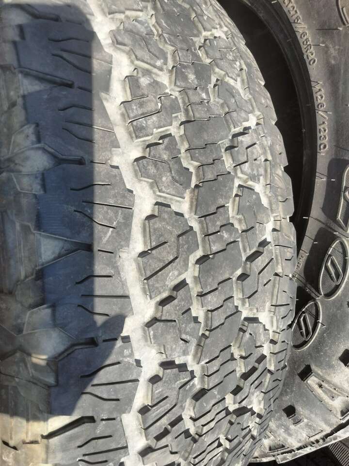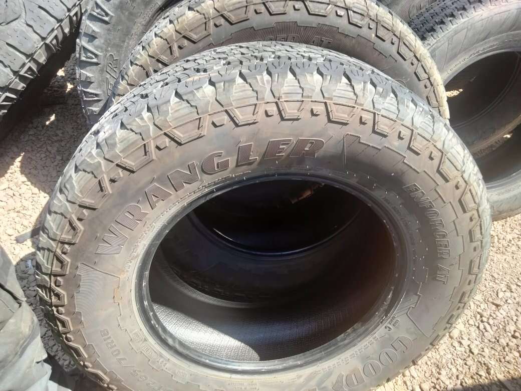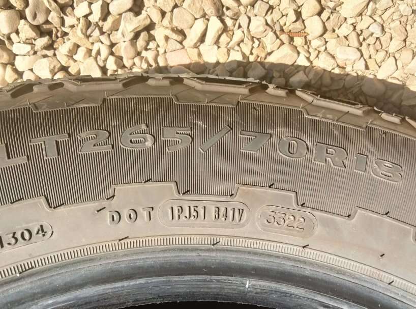 I have two LT 265/70R18 Goodyear Wrangler Enforcer AT tires with a 3322 fall of 2022 date code.... These 265/70/18 tires have very slight but extremely even treadwear and have no cracks or weathering or plugs or checkering..... These tires new have 11/32 tread and these tires has 9/32 tread....82% tread remaining.... Load Range C. These tires are $290 each online and more in shops. You get these two for $90 each. I am in Heber but I'm often in Wasatch Weber Davis Summit Salt Lake in Utah counties. I can often meet and sometimes even deliver. Please text or call 801-623-2458. I can take venmo or zelle or credit cards or cash. Thank you for your consideration.