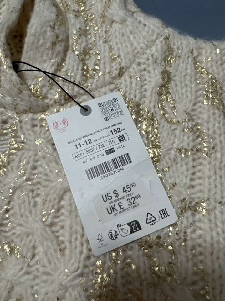 Zara cream and gold long sleeve size 11-12 girls. $20.