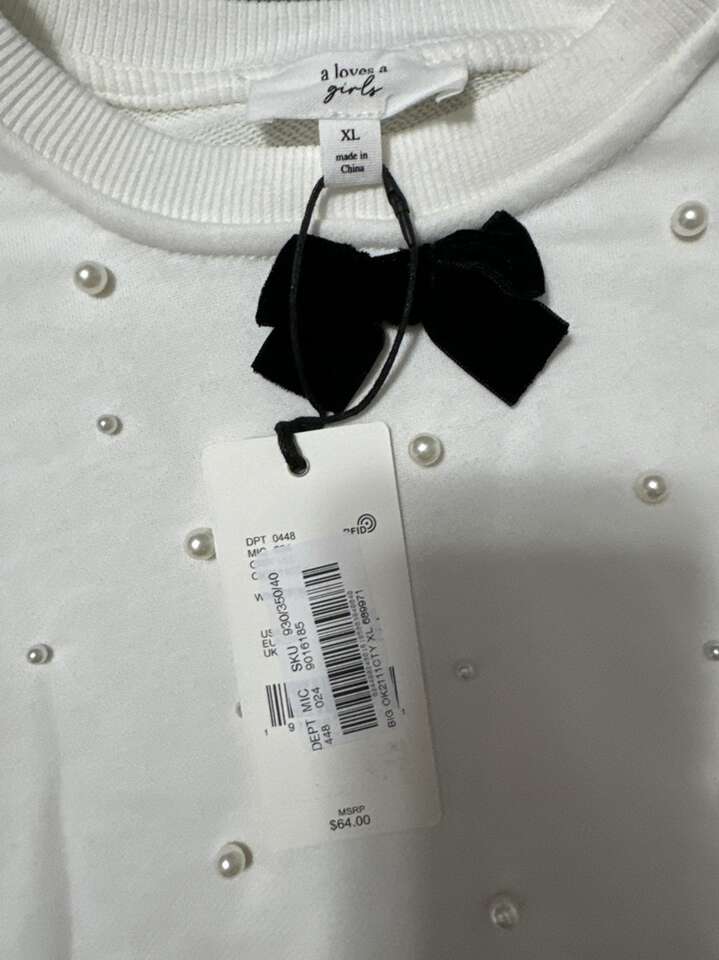 a loves a girls white with black bows long sleeve size XL girls. $20.
