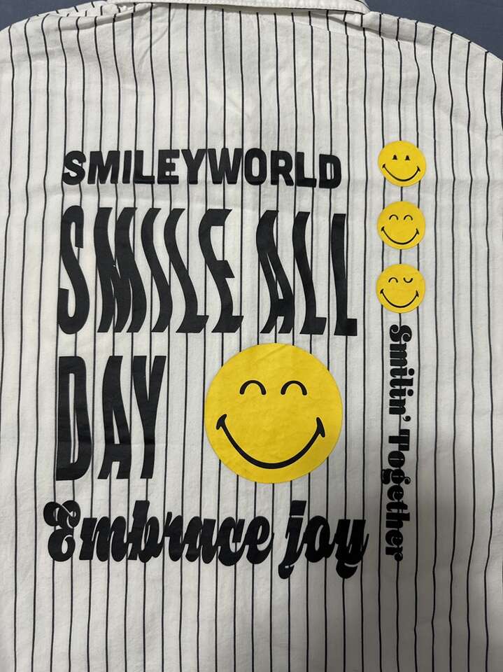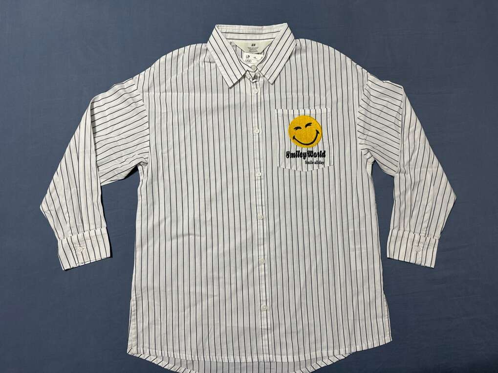 H&M white with black stripes button up Smiley World Smile all day size 8 girls. $10.