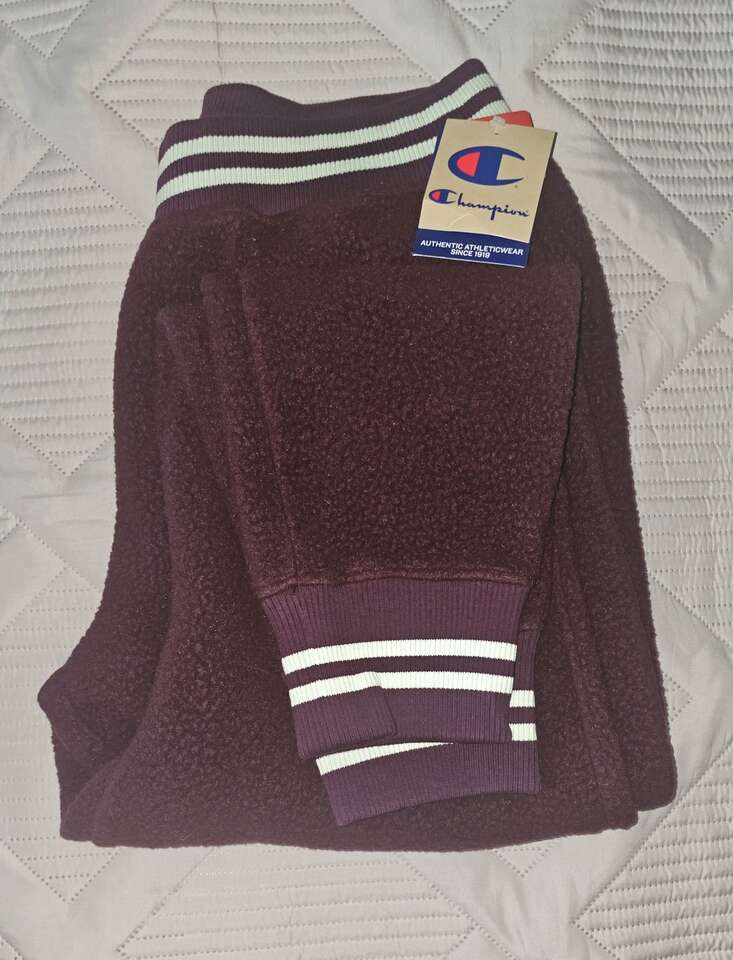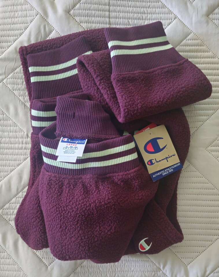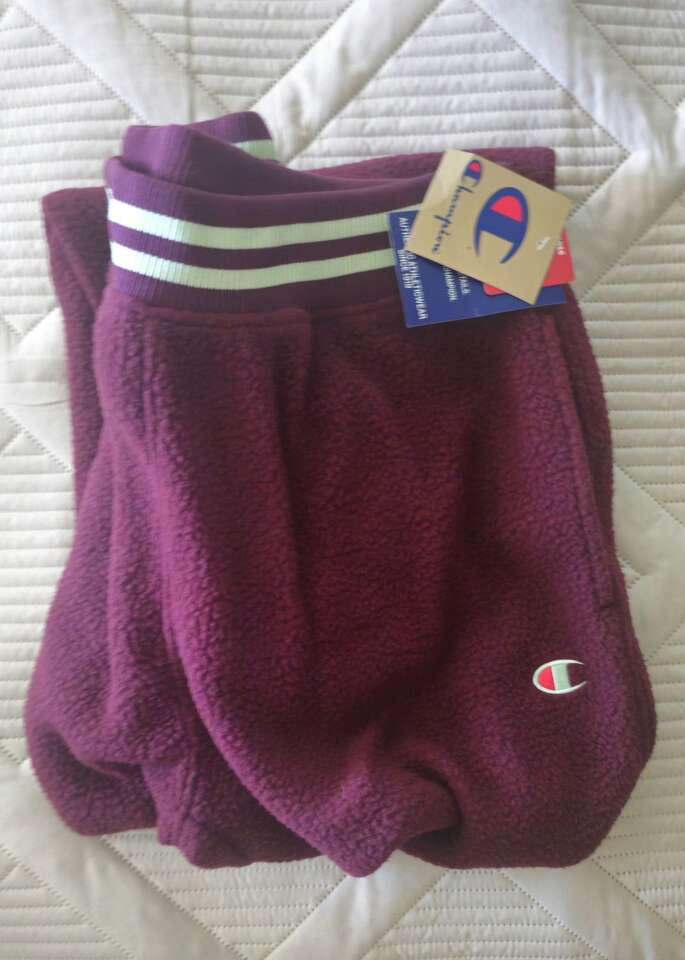 NEW WITH TAGS, Men's high pile fleece, maroon with beige sweat pant joggers. These are sooo fluffy, soft, thick, and comfortable. Also, they're very roomy and nicely banded around the bottom of the legs, making it easy to wear mid calf too.