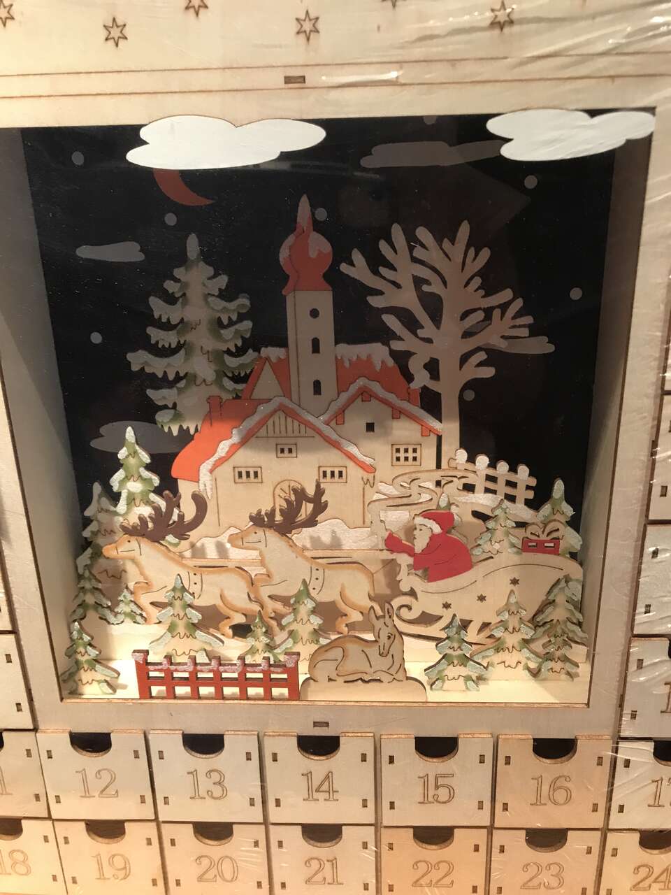 3D Wooden Christmas Light Up Calendar 24 Day Countdown Drawers Homcom.Advent Calendar with 24 drawers. New: A brand-new, unused, unopened, device in its original packaging. One tree has been broken off the top. See second picture. Last 2 pictures shows it with lights on.