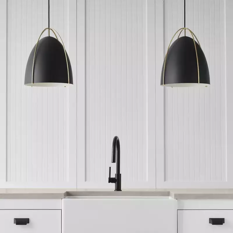 VenmoThis 1-light indoor cone pendant has a modern, clean-lined design with a dash of industrial influence. Offering an updated take on a classic silhouette, it's made from black metal with a chrome accent trim. This fixture hangs from a sloped ceiling-compatible canopy and a length of adjustable height downrod. Plus, it's endlessly versatile: It's safe to use in damp locations and compatible with dimmer switch