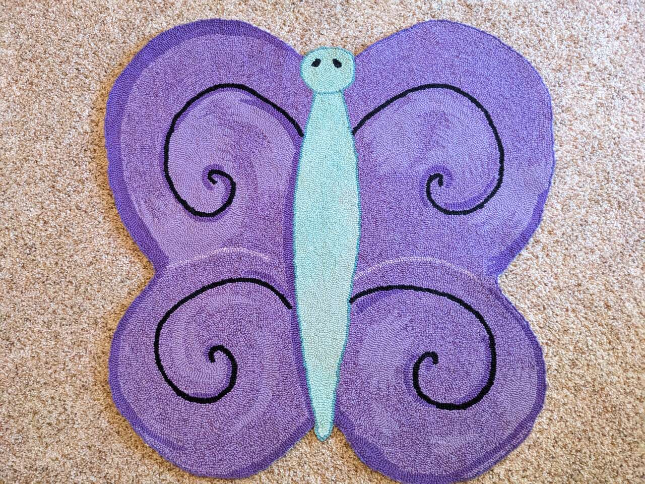 Brighten up any room with this adorable purple butterfly rug and pillow. Both in excellent condition, no stains. Rug is 30" x 30" Pillow is 18" x 18"