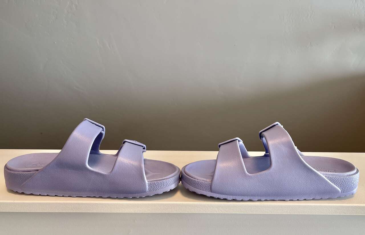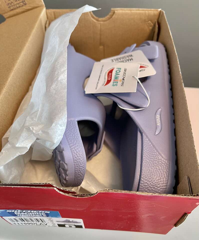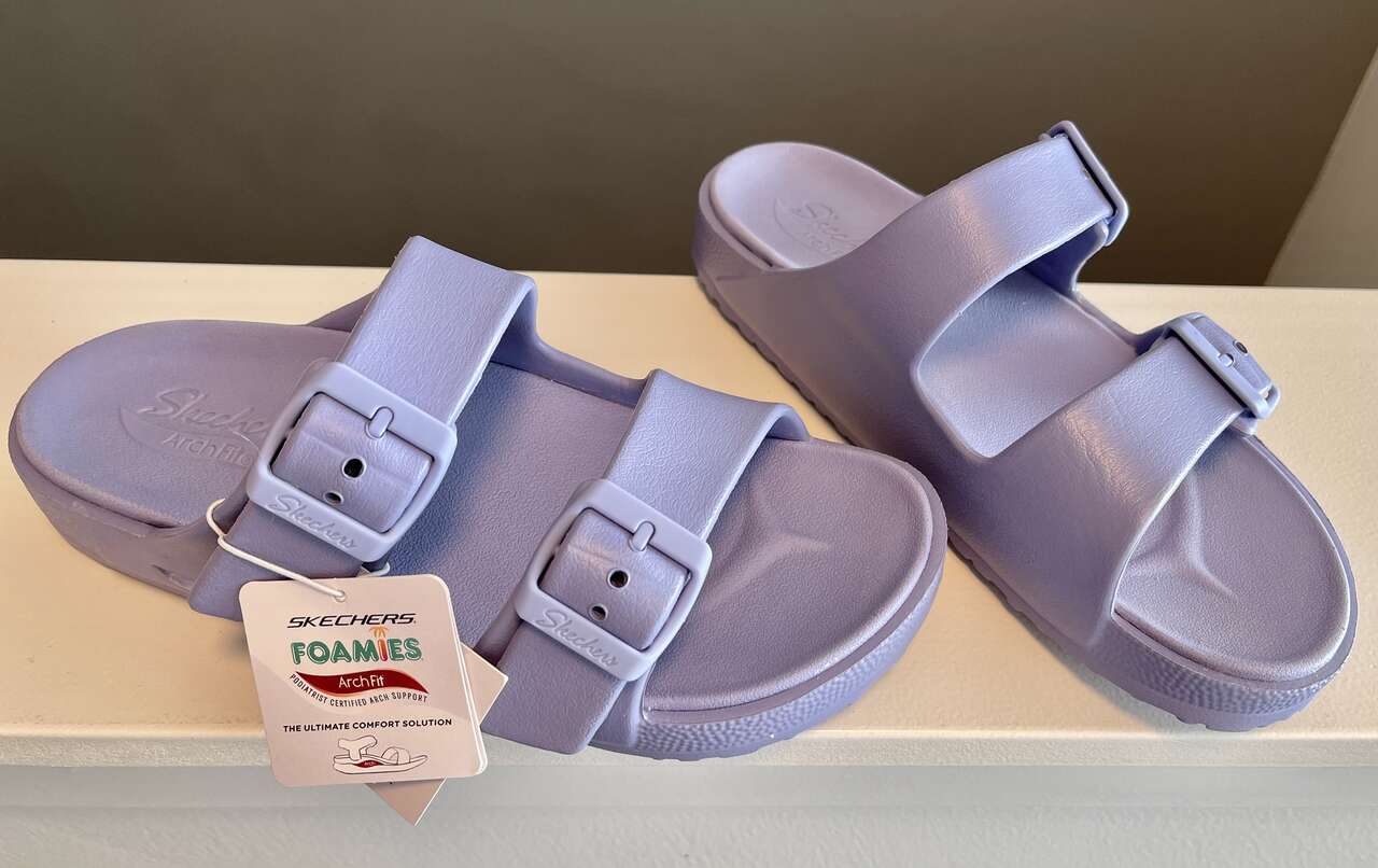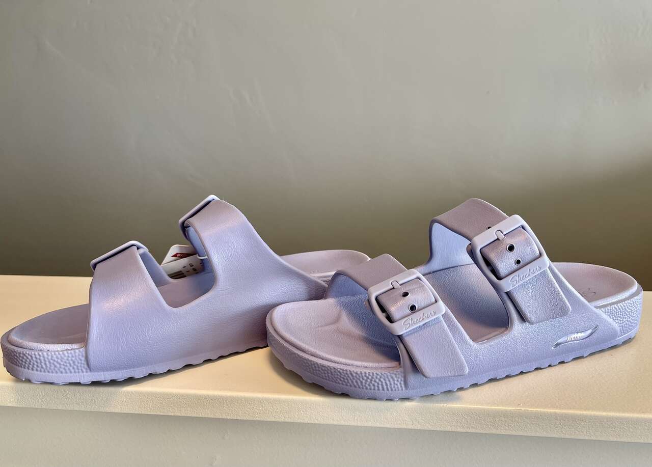 Super cute Skechers Cali Breeze 2.0 Arch Fit Foamies double strap sandals! Discontinued rare pretty lavender color. Waterproof and machine washable