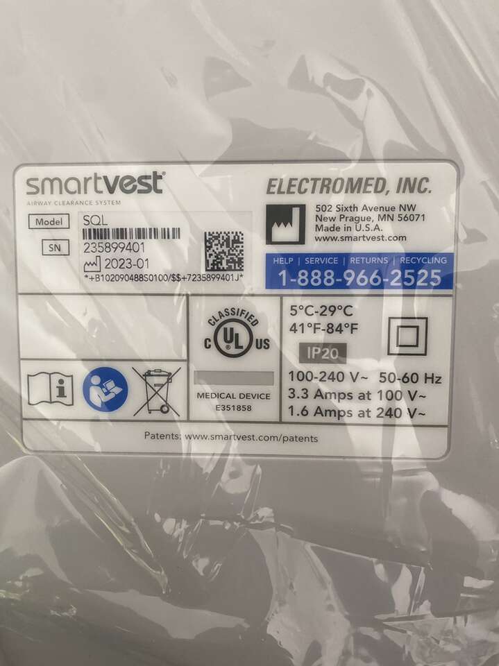 Brand new never used electromed smartvest SQL airway clearance system Used in refurbished condition these cost $1,200 This one is new in the original packaging It was purchased for my mother who passed before it could be used.