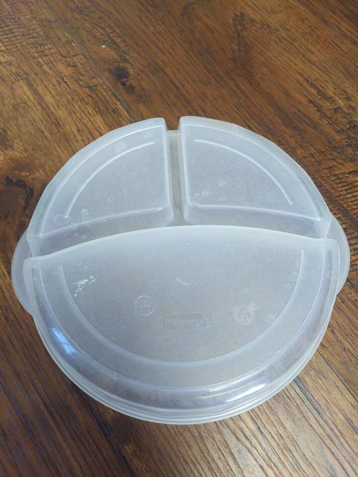 VenmoThis Tupperware container is used but in good condition. It does need to be cleaned, it's been in storage for a while. It does say 556L inside the lid.