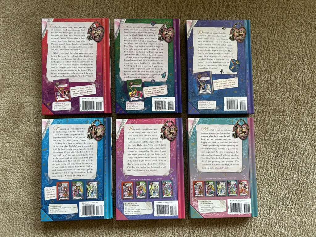 Ever After High: A School Story Series 1-6, by Suzanne Selfors. Companion books to the original Ever After High series by Shannon Hale. Little, Brown, published 2015-2016. Six first edition hardcover books in excellent, like new condition. Text only. Cash or Venmo.