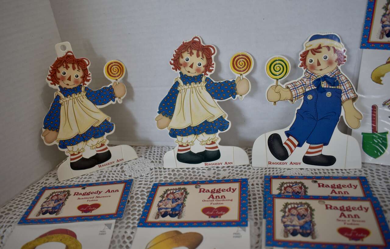 IT MEASURES… Raggedy Ann and her stand measures… 6 inches tall and Andy measures…5 3/4 inches tall.