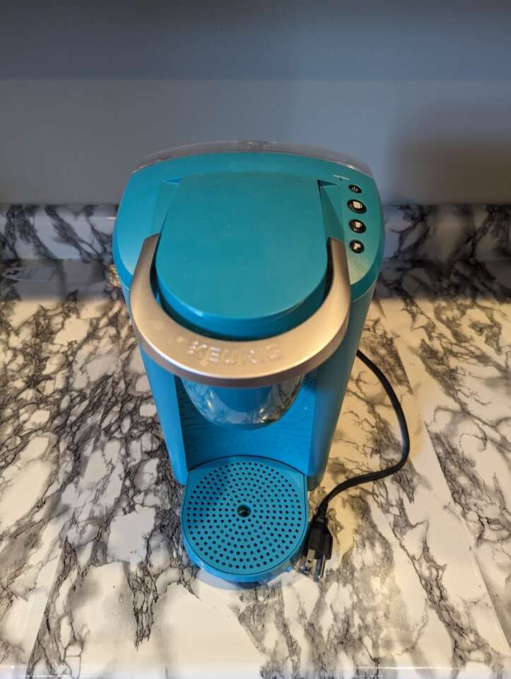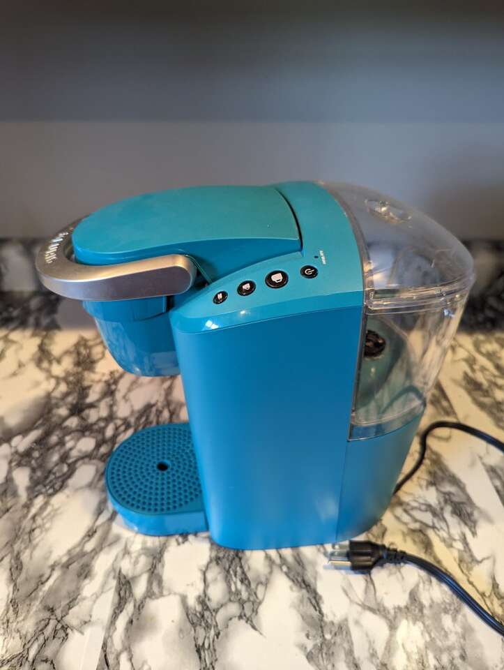 VenmoKeurig K-Compact Single-Serve K-Cup Pod Coffee Maker - Turquoise Received this as a gift and have only used it about 5 times, so it is still in great condition. I bought reusable cups and filters for it, which I am including but don't have pictures. Sells new on Amazon for $89.95, selling for $30, cash or Venmo only. Pricing is flexible, make me an offer if you're interested in this!