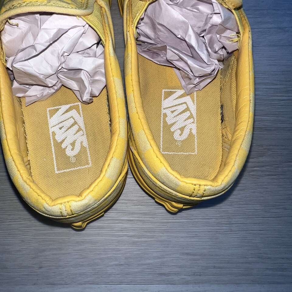 ApplePayGood preowned condition. They have some slight marks on the checkers, but when being worn you can hardly tell. I took lots of close up pics so you can see what I mean. Tons of life left in them!