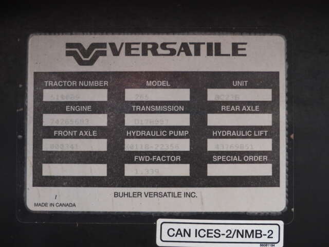 This is a 2018 Versatile 265 Tractor!! Each of these Versatile tractors are prepared, "Whole and Complete", for hard work by our top paid crew of technicians with over 9 years of dealer experience with Versatile! This is not a sales pitch, you will not find another dealer like us to partner with in agricultural service, parts and sales. Don't believe us? give us an opportunity to provide you with a solution to your agricultural needs and you, the American farmer, will succeed. Equipment includes: 265 horsepower, Cummins QSL9 6 cylinder 8.9L 543 CI engine, 16 forward 4 reverse powershift transmission, 25 front weights weighing at 1650 lbs, PTO and 3-pt Rear fender buttons, 4 rear SCV's, small 1000 PTO, adjustable 3-pt ends, halogen work lights, battery shut off switch, front tool box, heated and cooled air right operators seat, in cab inverter, touch screen tractor monitor, 1,243 hours, front and rear Auto Shade sun blinds. Equipment located in Fruitland ID. give us call or come and see it for your self!!