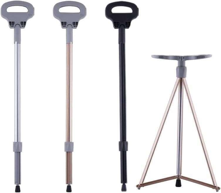 ALEVMOOM Portable Cane Stool, Walking Stools for Adults. Portable Walking Cane with Seat Folding Lightweight Retractable Stool for Elderly, Outdoor Travel, Rest Stool — Max Load 440lb