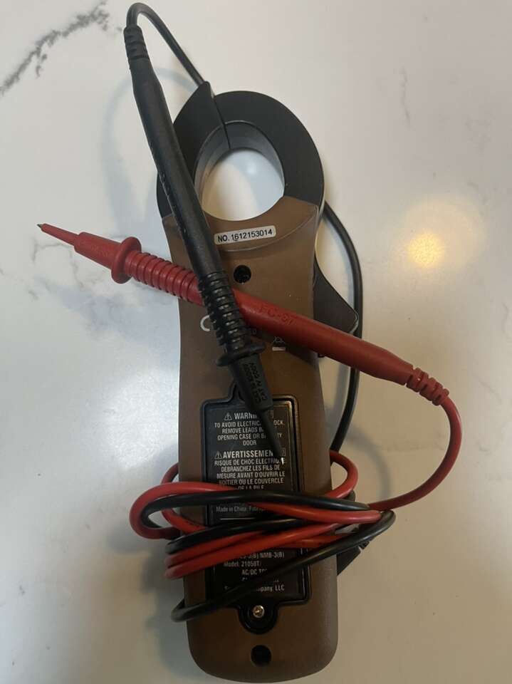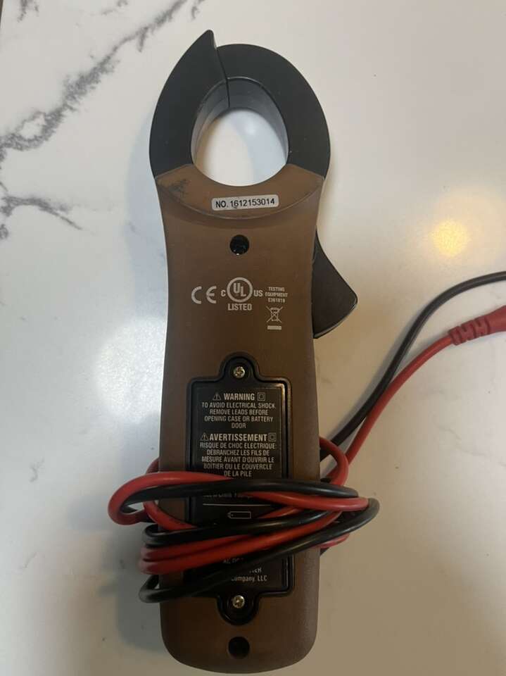 Linear corporation 21050T clamp meter. Measures both AC and DC currents, Great for motors and battery backups. Built in non-contact AC voltage detector. Capacitance, frequency,duty cycle and temperature functions