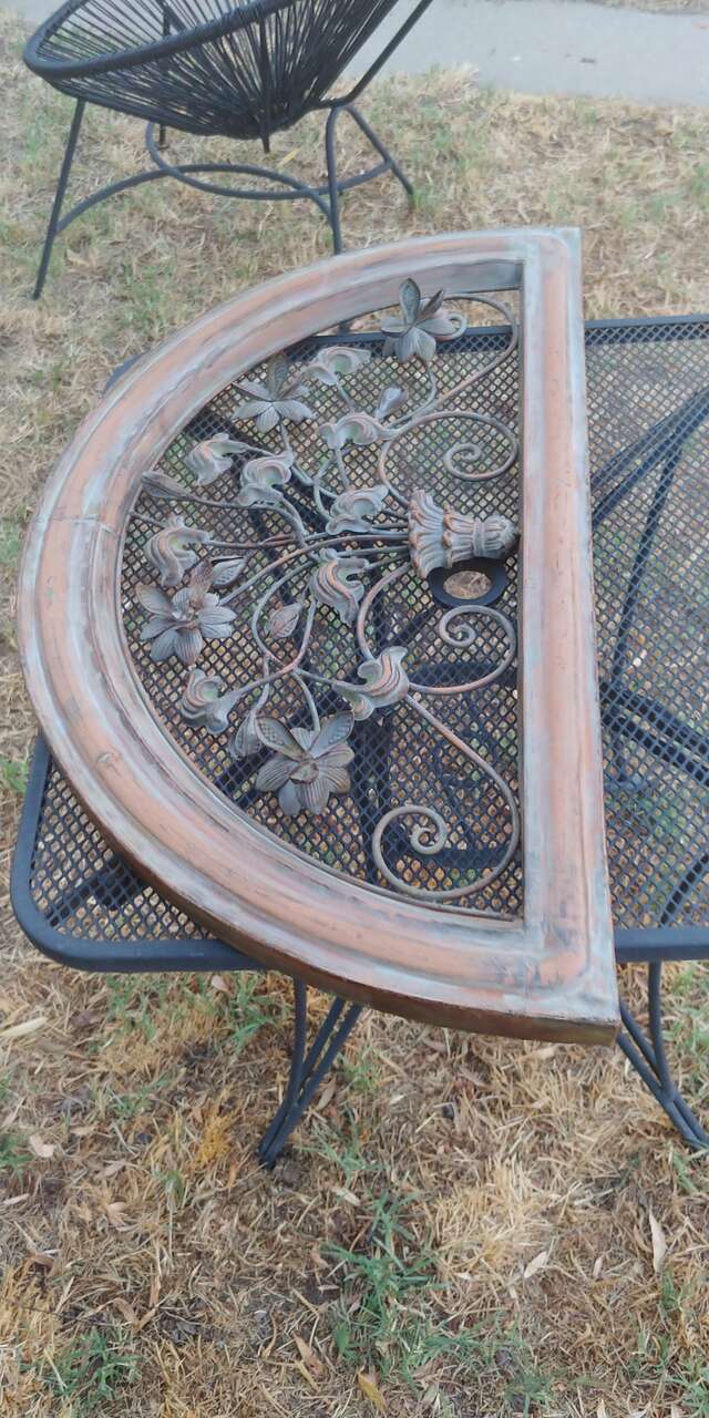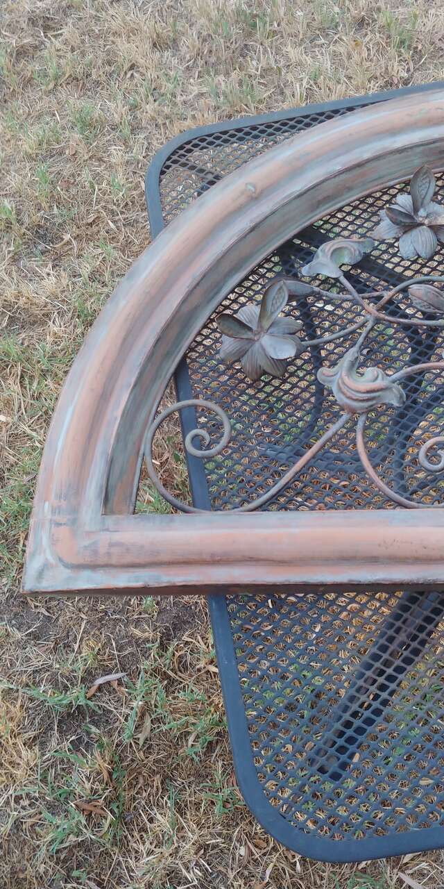 VenmoNice half moon arch. Great for those hard to cover arch Windows. Size 35.75 w 19.75 tall about 2 inches deep.