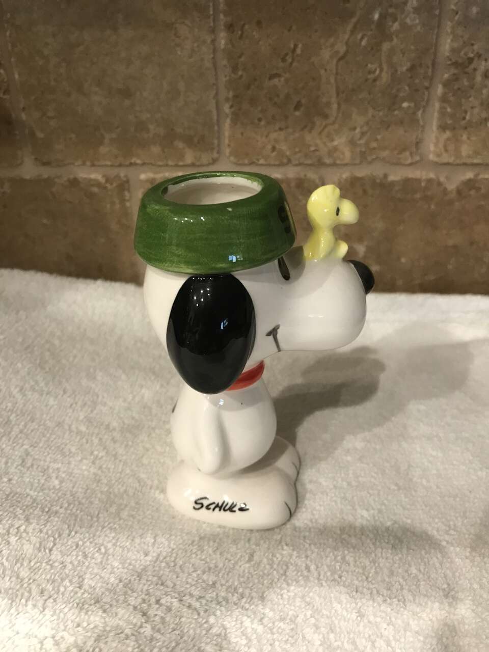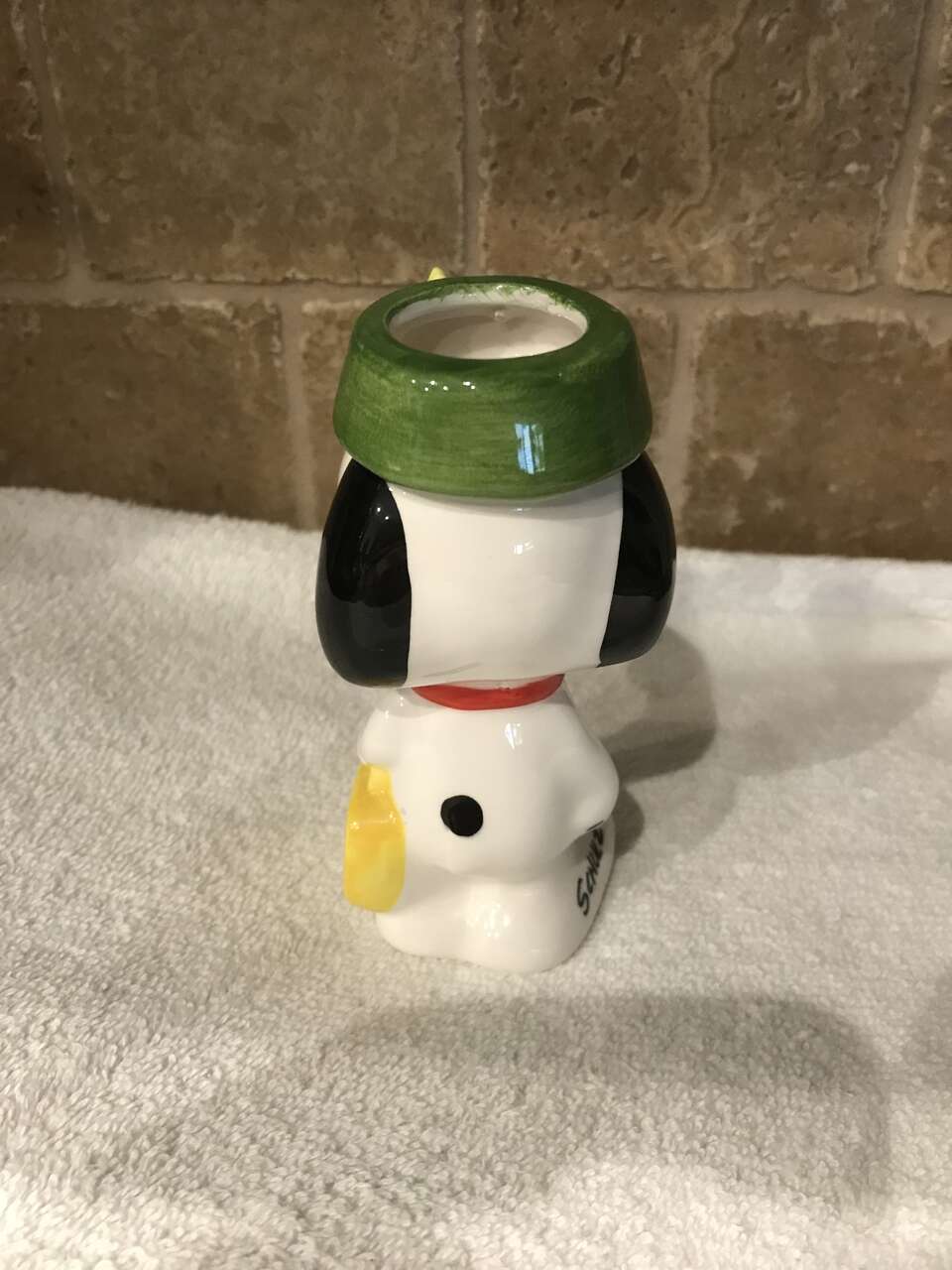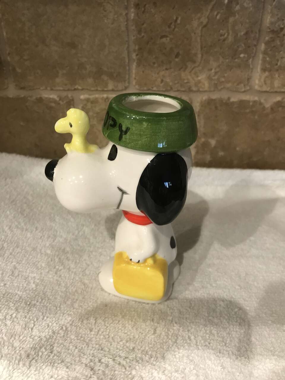 This Snoopy & Woodstock Figurine with the dog dish on Snoopy's head is in excellent condition. It is 4 1/2 inches high.