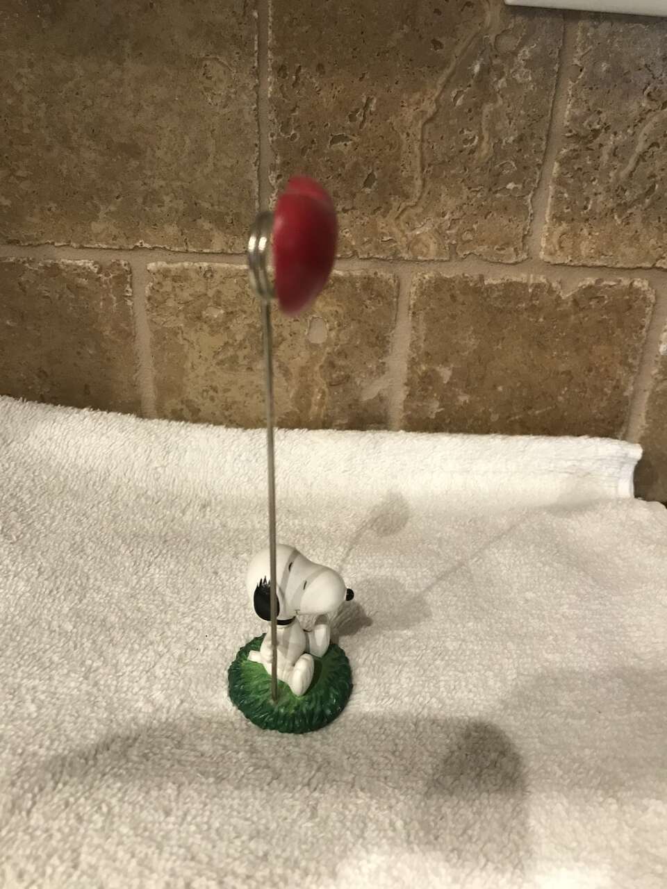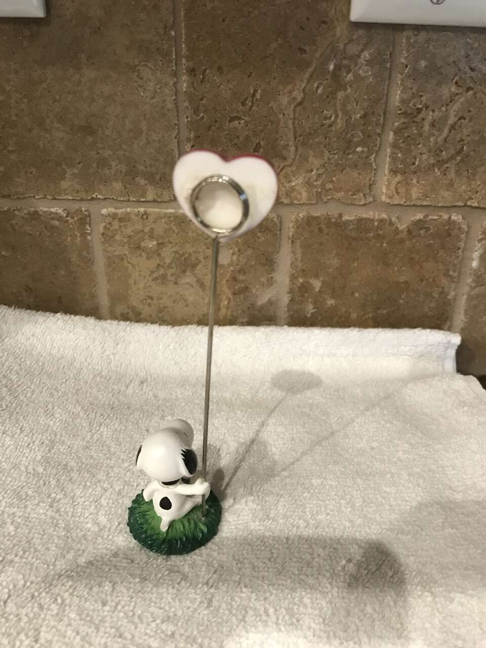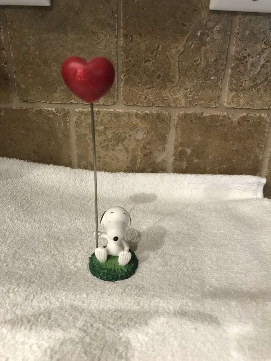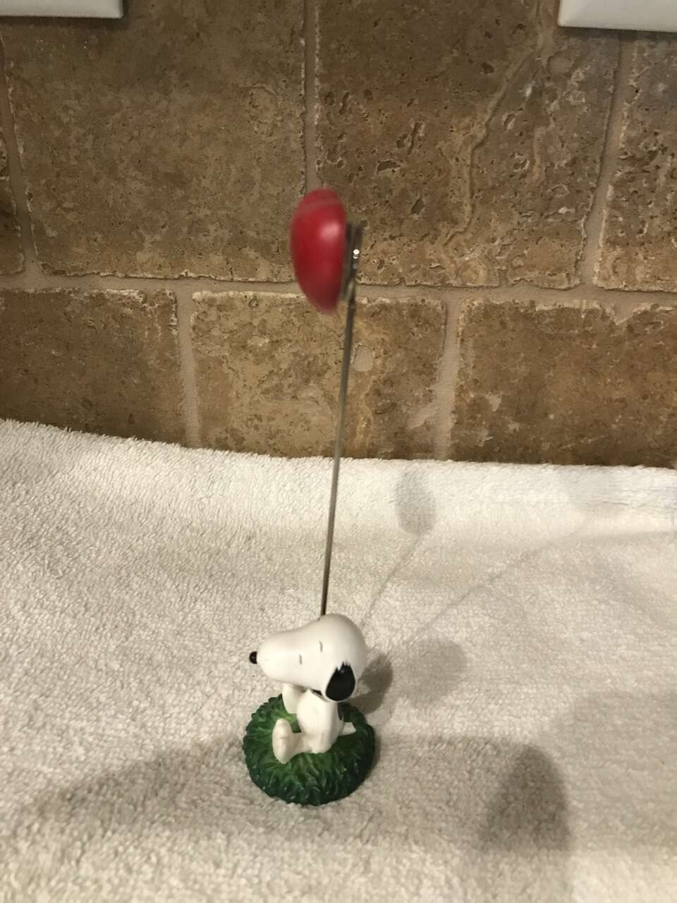 This miniature Snoopy is holding a heart balloon. It is 5 1/2 inches high and is in excellent condition. I am selling several other Snoopy items, so please look at my other ads.