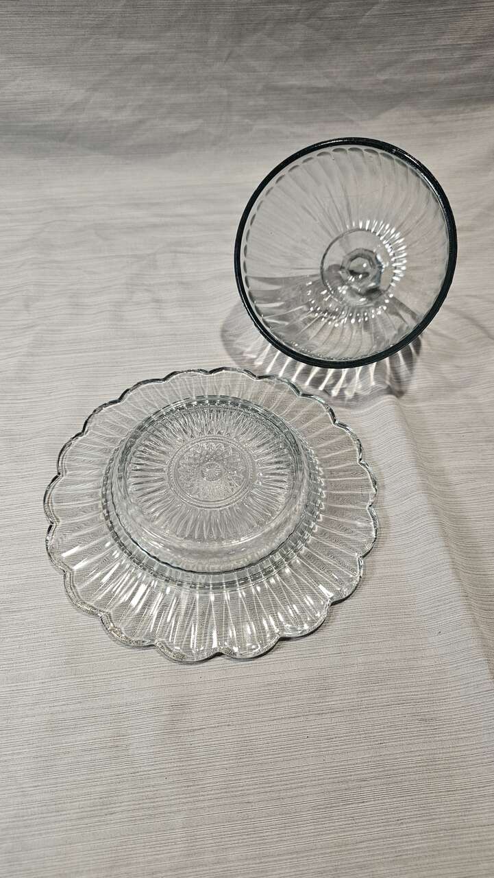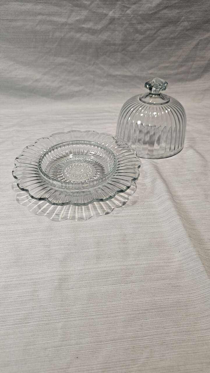 GooglePayVintage French Cheese Dome Clear Glass Bell and Plate Food Cover Table Cloche