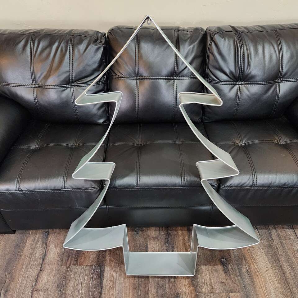 Giant Silver Christmas Tree Design Wall Hanger Decoration Cookie Cutter Style 48 inches Tall by 38 inches Wide by 6 inches deep approx 8 pounds all metal construction, painted silver Opened box for pictures, see pictures, unused condition. I have more than one if you are interested in more let me know. cash only please Hard to Find Cookie Cutter Decorations This Big!! Great Addition to Any Collection!! Thank You!! Item Number: 06-0437S Keywords: Giant, Jumbo, Huge, Large, Big, Very Big, Extra Large, Very Large, Life Sized, Tall, Over Size, Massive, Gigantic, Life Sized, Door Hanger, Wall Hanger, Christmas Décor, Christmas Decorations, Home Décor, Design Styles, Holiday Season