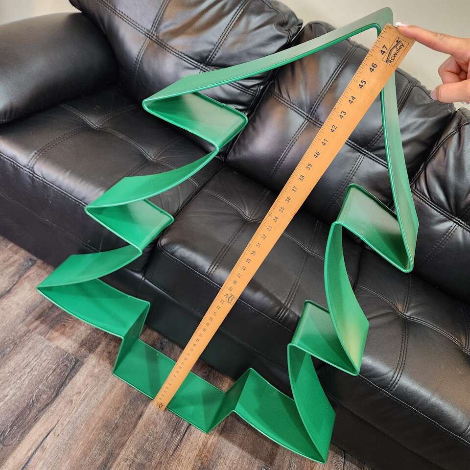 Giant Green Christmas Tree Design Wall Hanger Decoration Cookie Cutter Style 48 inches Tall by 38 inches Wide by 6 inches deep approx 8 pounds all metal construction, painted green Opened box for pictures, see pictures, unused condition. I have more than one of these if you are interested in more. Cash only please. Hard to Find Cookie Cutter Decorations This Big!! Great Addition to Any Collection!! Thank You!! Item Number: 06-0437GREEN Keywords: Giant, Jumbo, Huge, Large, Big, Very Big, Extra Large, Very Large, Life Sized, Tall, Over Size, Massive, Gigantic, Life Sized, Door Hanger, Wall Hanger, Christmas Décor, Christmas Decorations, Home Décor, Design Styles, Holiday Season