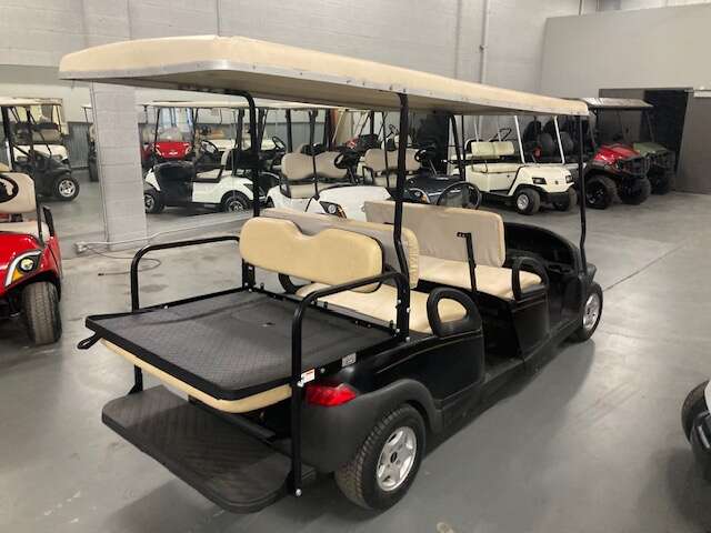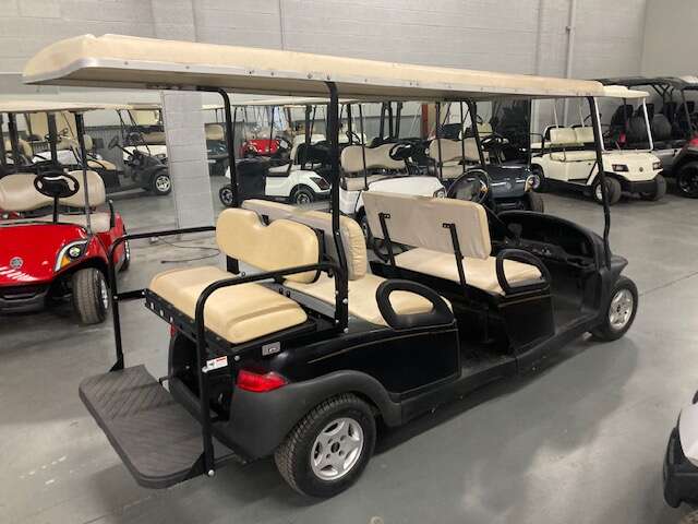 GooglePayFeatured is a Tuxedo Black 2008 Club Car Precedent 6-Passenger 48 Volt electric POWERED with Good used Tested TROJAN batteries. This cart was just traded in and is in great shape and will be a blast in the neighborhood or on the property. This cart is loaded with accessories including, headlights and taillights and brake lights, folding rear seat kit, energy gauge and a full general service has been performed and charger is included. Cart is ready for some fun for the whole family and will be a great Trick or Treater cart this fall! Comes with a 90 day warranty. Come see these carts and 50 other carts on our showroom at Highland Golf Carts located at 3653 South 500 West or call 801-322-4653 and ask for James