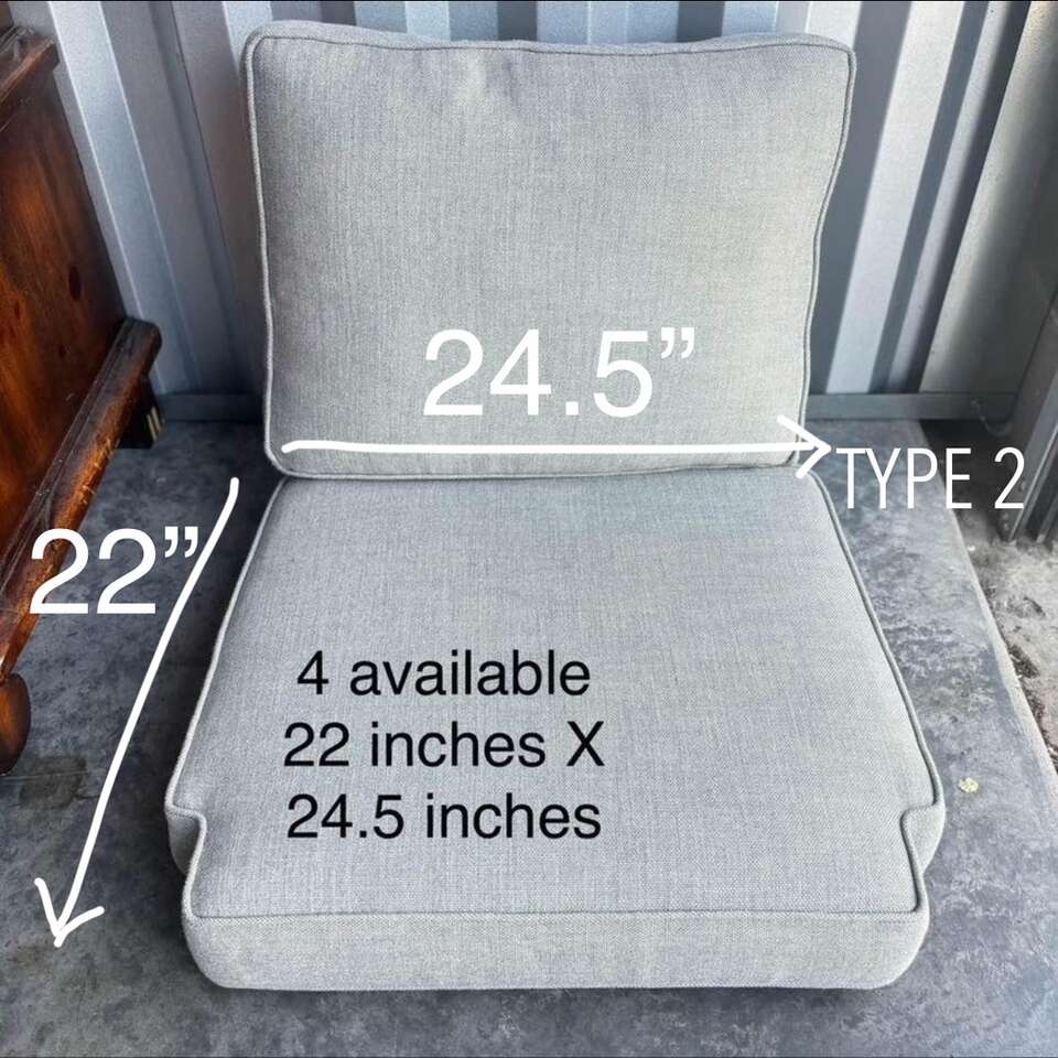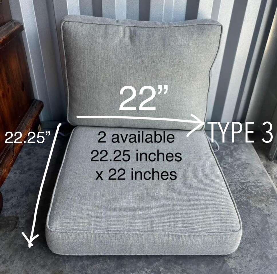 These nearly brand new cushions from Restoration Hardward Antibes outdoor furniture collection. Extremely durable and high quality outdoor cushions. CLASSIC SIZE. (used for only a month last summer. Water repellant and quick drying).