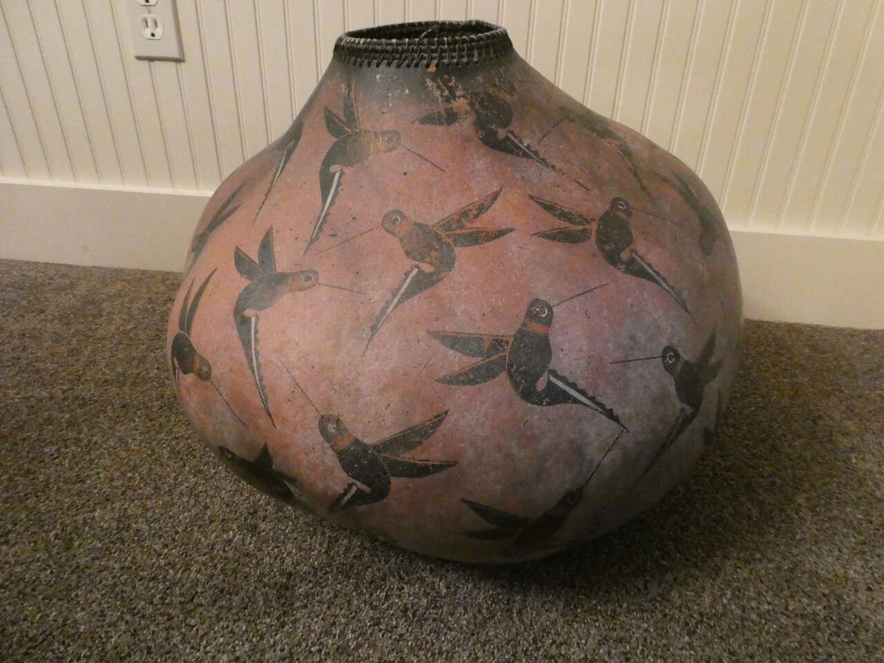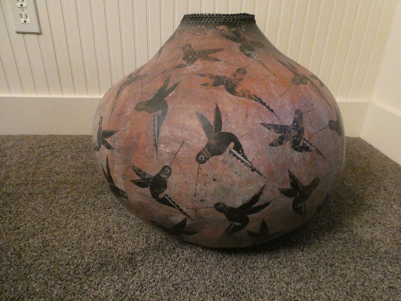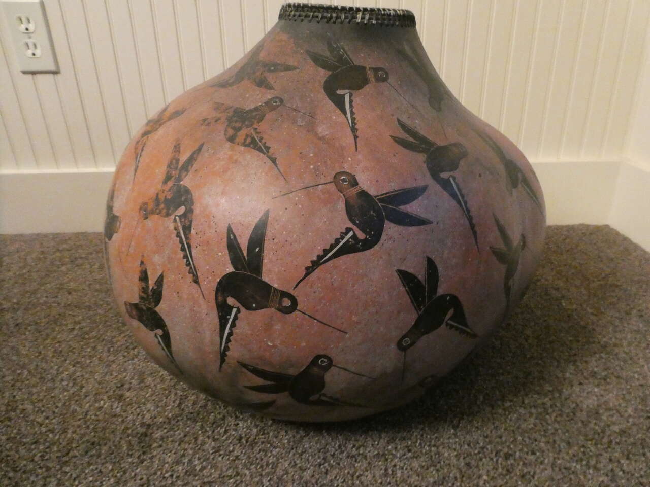 VenmoThis is a very large gourd hand painted by Robert Rivera. Can't find a signature, but it is painted with his signature hummingbirds. 22" diameter X 18"H. Let the pictures do the talking! Text for an appointment to see. Located in theSandy/Draper area