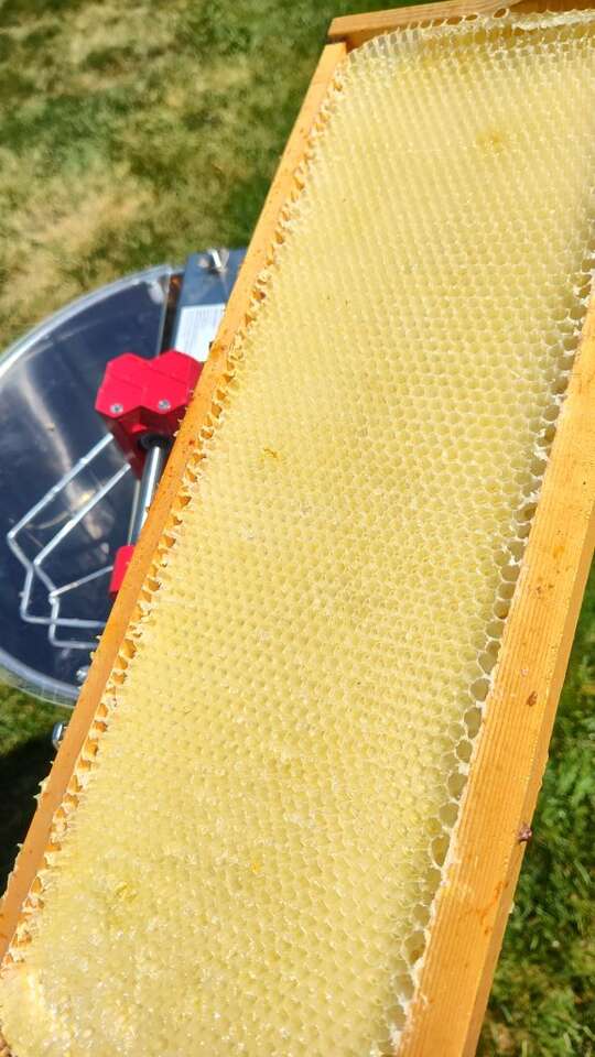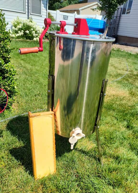 3 frame centrifugal honey extractor! Works great and is quick and easy. $20 for 2 days, and if you need a few more days to finish up, that is free. It also comes with a roller decapper and pin decapper.