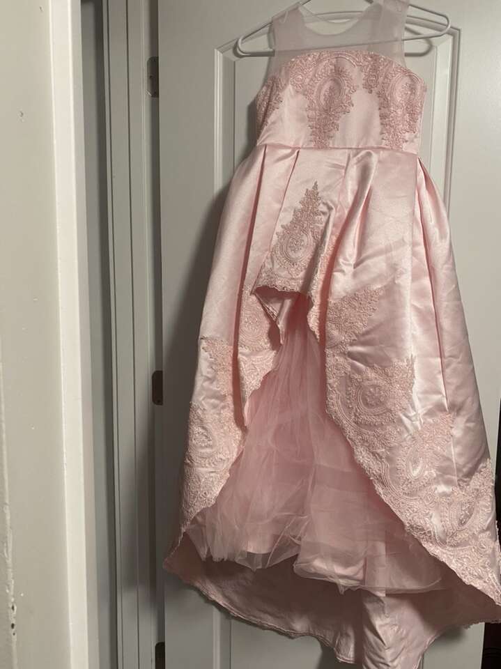 Never worn formal dresses for girls, size 10/12. Handmade, zipper closure, small train. Paid $120.00, asking $80.00. Text if interested.