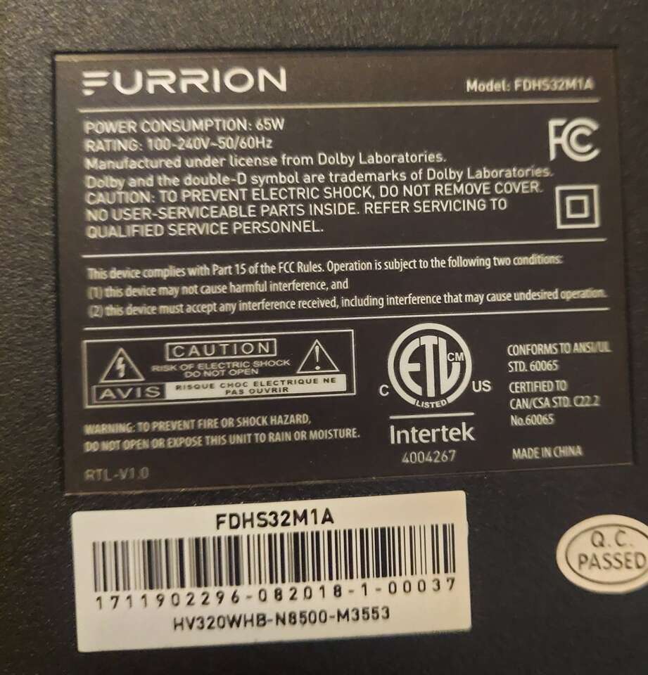 32" 65W Furrion Rv Trailer TV With Wall Mounted kit. See other listings by seller. Dave 8O1-380-6373 thank you.