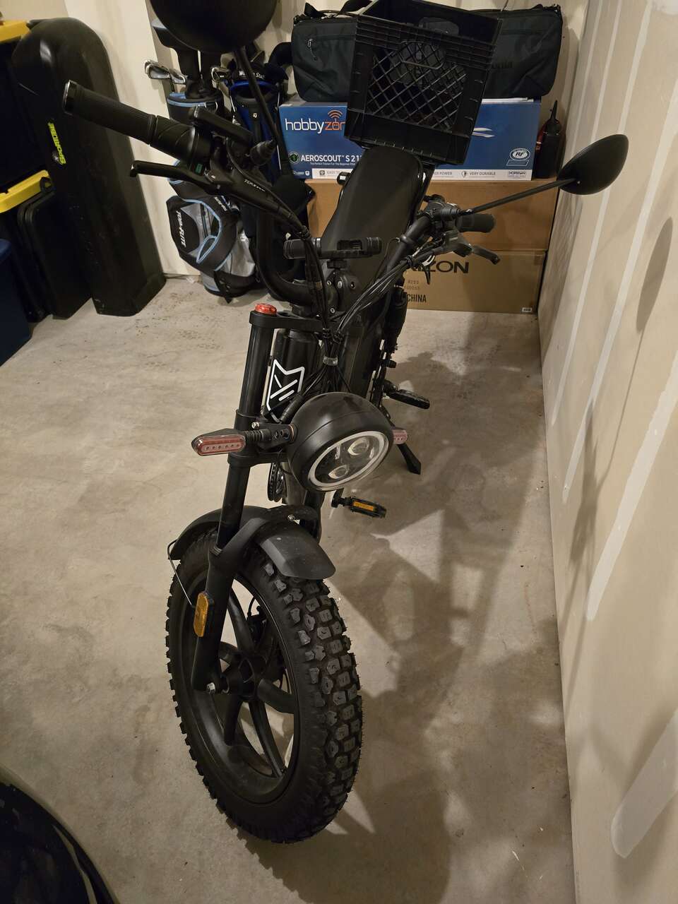 I'm selling my Juiced HyperScrambler 2 that comes with two 52V batteries and hundreds of dollars of upgrades, including: Shinko 244 Series Tires Fender Kit Standard Rear RelayRack RelayRack Universal Cargo Adaptor Kit Cargo Crate Flip Out Foot Pegs Phone Mount Alarm System with Wireless Key (sounds alarm if someone touches the bike while you're gone) Motorcycle Chain Lock with Keys Spare Key This bike is an absolute blast to ride and has the best range available with it's two massive batteries. The upgraded tires make a huge difference and allow you to do some off-roading as well. The bike can go up to 32 mph with no pedaling and has less than 500 miles on it - it's still in great condition.
