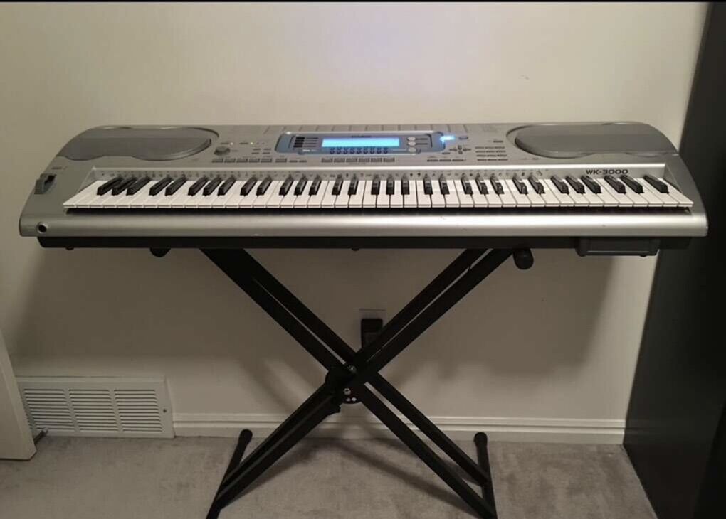 VenmoCasio's portable musical keboard utilizes the high performance great for church, gig, studio or at home playing. This 76 keyboard Comes with Portable sturdy keyboard stand, piano book stand & wall adapter in great working condition.