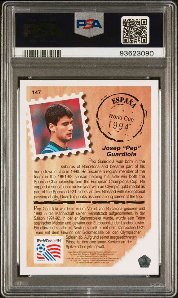 1993 UD World Cup Soccer Josep Guardiola English/German #147 PSA 10