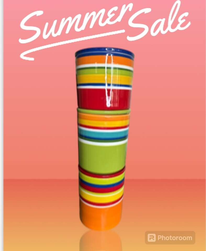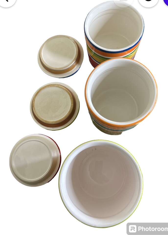 VenmoExcellent condition like new the tallest one is 7.25 the smallest one is 4.75 inches tall the medium one is 6.75 inches tall. No chips or cracks sealed with a rubber around each lid