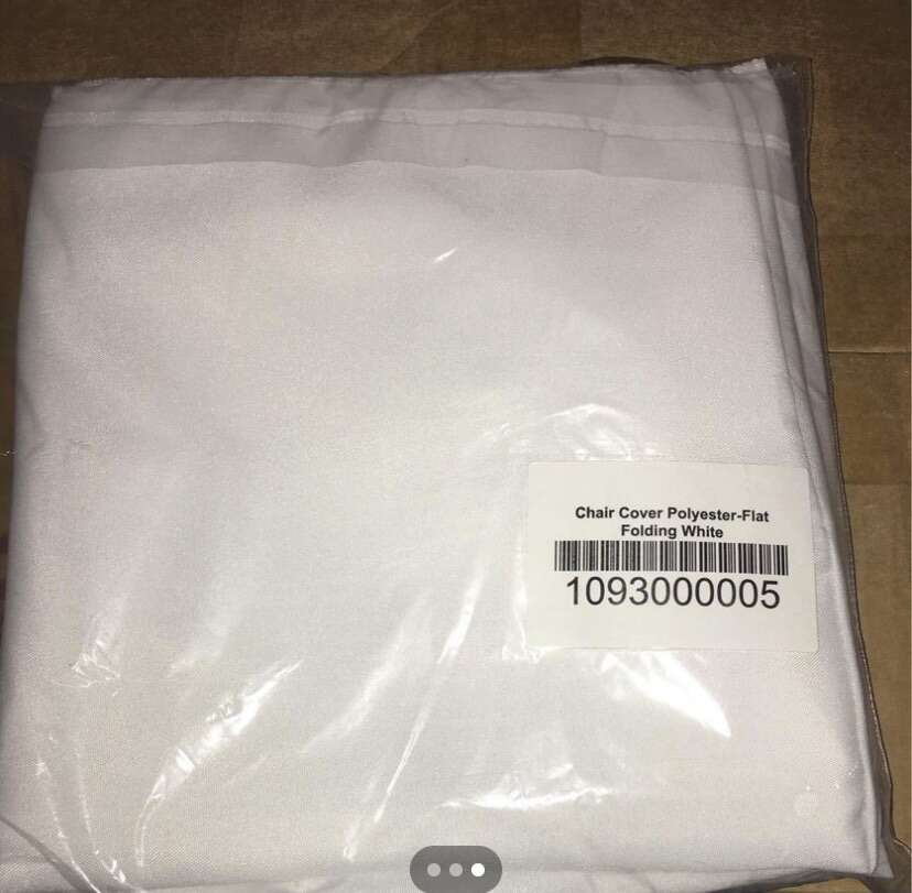 Chair Cover Polyester Flat Folding Color White Size 18” x 37” Quantity 36 pieces