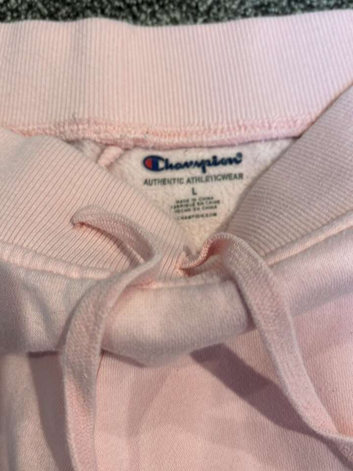 Champion pink sweatpants in size youth large in good used condition. Smoke-free, pet-free home. $10, cash only please.