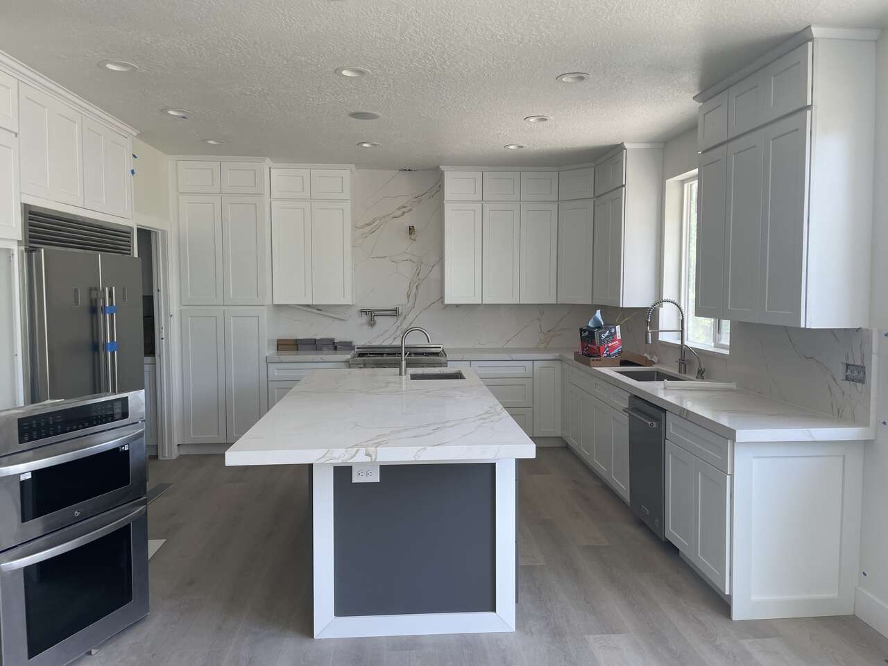 AMC Building Materials LLC has the white shaker and grey shaker cabinets in stock.