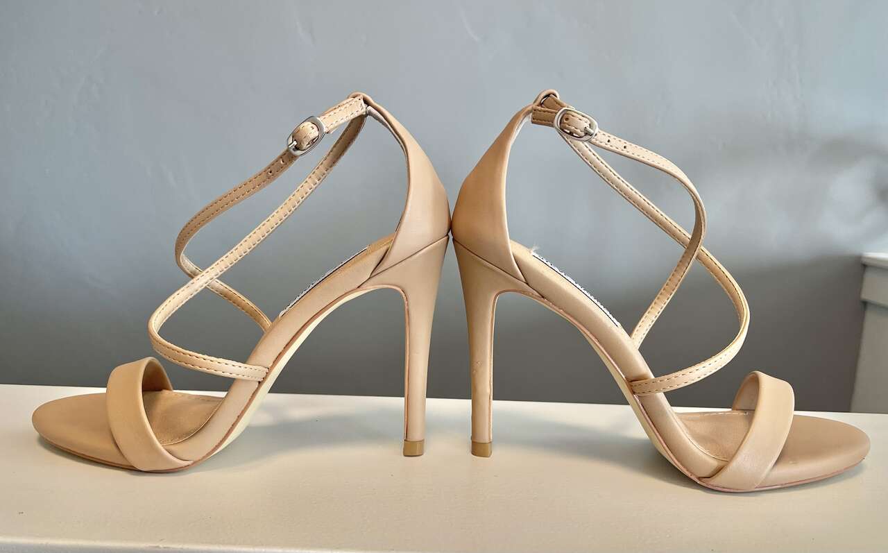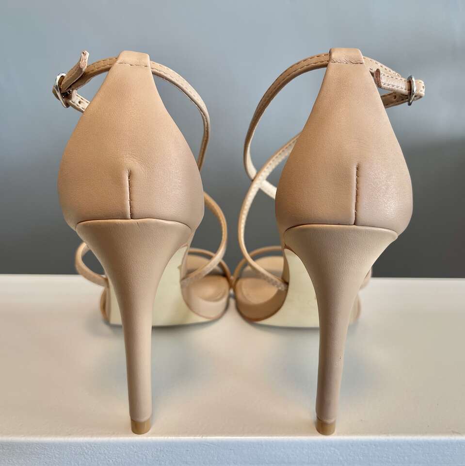 Very nice neutral dress stiletto heeled sandals! Goes with every color and endless wardrobe options. Looks amazing dressed up or casual w/jeans!