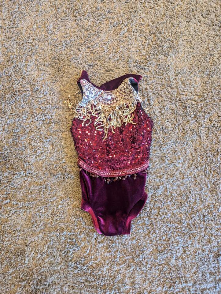 Burgundy sequin and bead leo-medium child $40