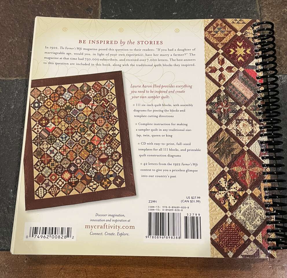 VenmoThe Farmer's Wife Sampler Quilt book includes 111 6" quilt blocks, cutting instructions, guidelines for making a sampler quilt in lap, twin, queen and king sizes - plus the 42 letters of the 1922 Farmer's Wife Contest that provide inspiration for the quilt's history, and CD with easy to print full sized templates for all 111 blocks and printable quilt construction diagrams.