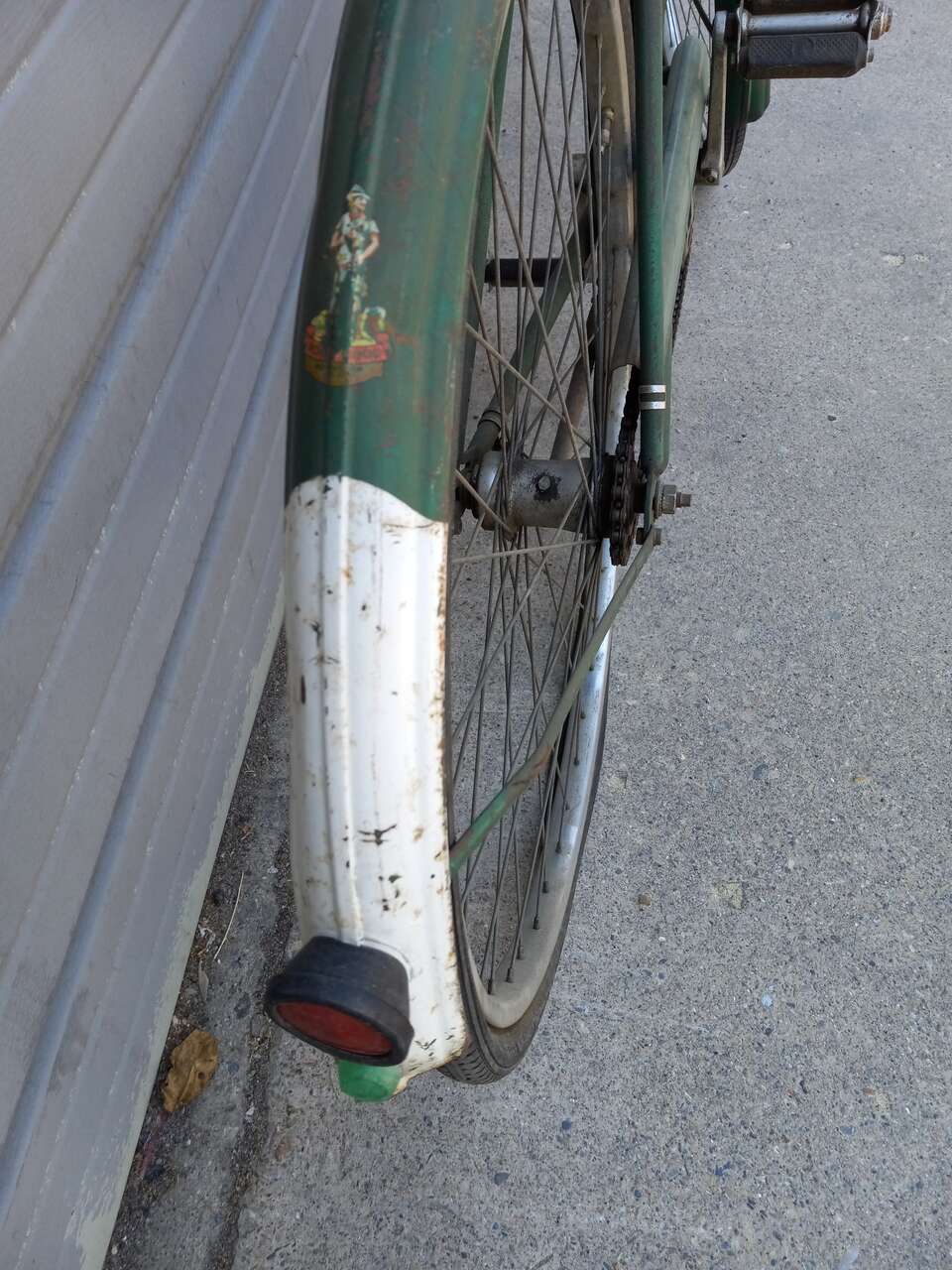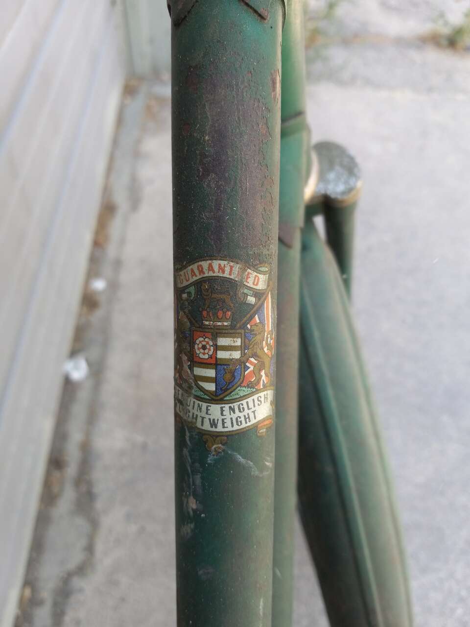A vintage, probably 1950's, 1 speed bicycle. It was made by Raleigh of Nottingham England. We have NOT cleaned it or pumped up the tires. It is as found in a garage and will be sold as is. It appears to be complete.